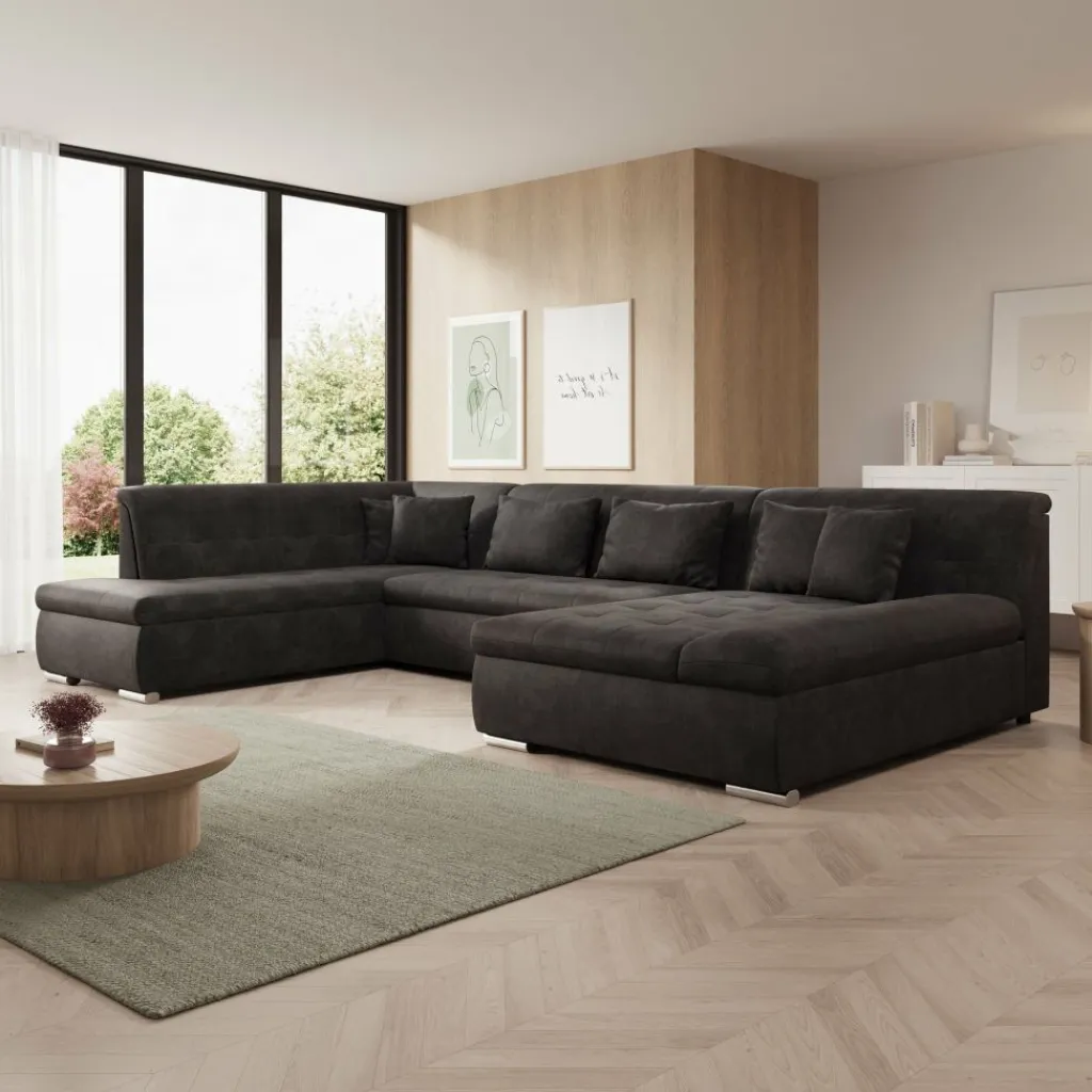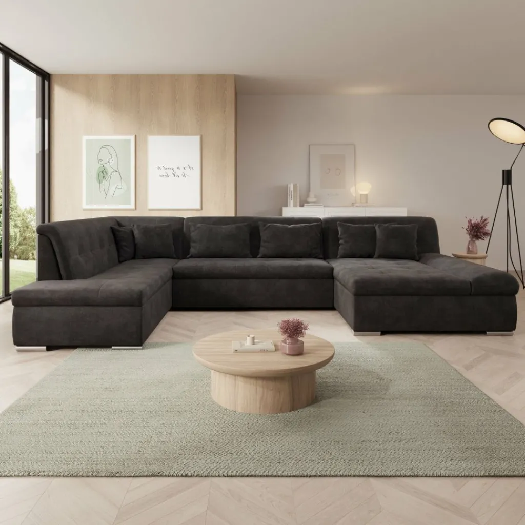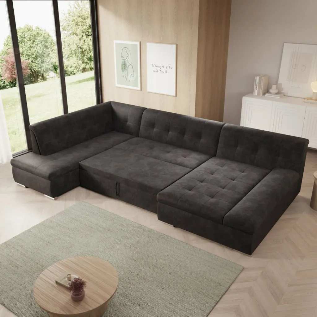 Hoekbank Alberta XL is een ruime en functionele U-vormige bank, ontworpen voor dagelijks comfort en praktisch gebruik. Dankzij de zachte ribstof en doordachte indeling past deze bank perfect in een modern interieur.