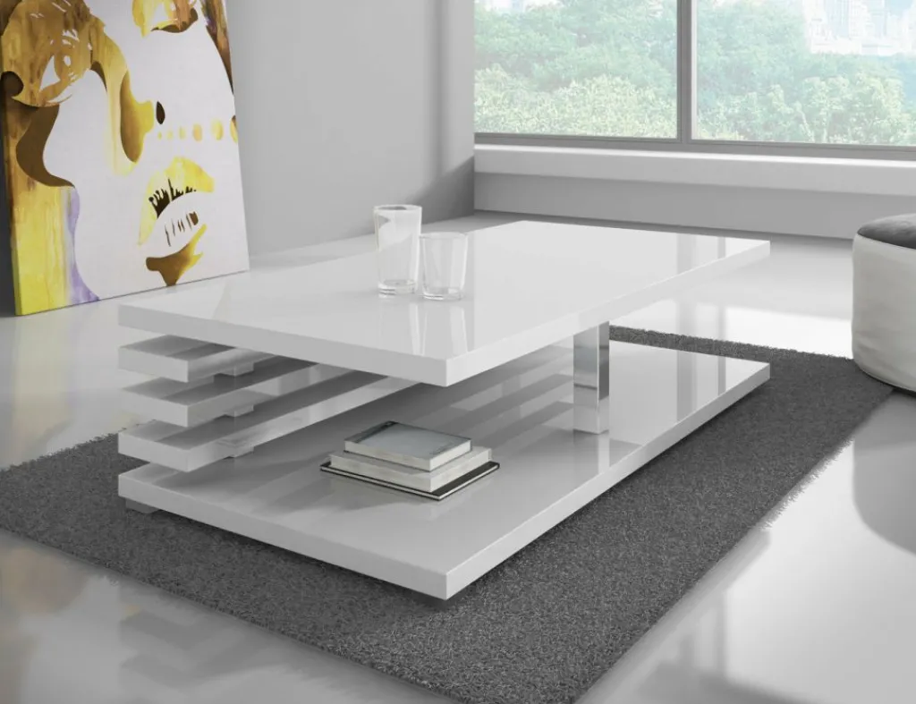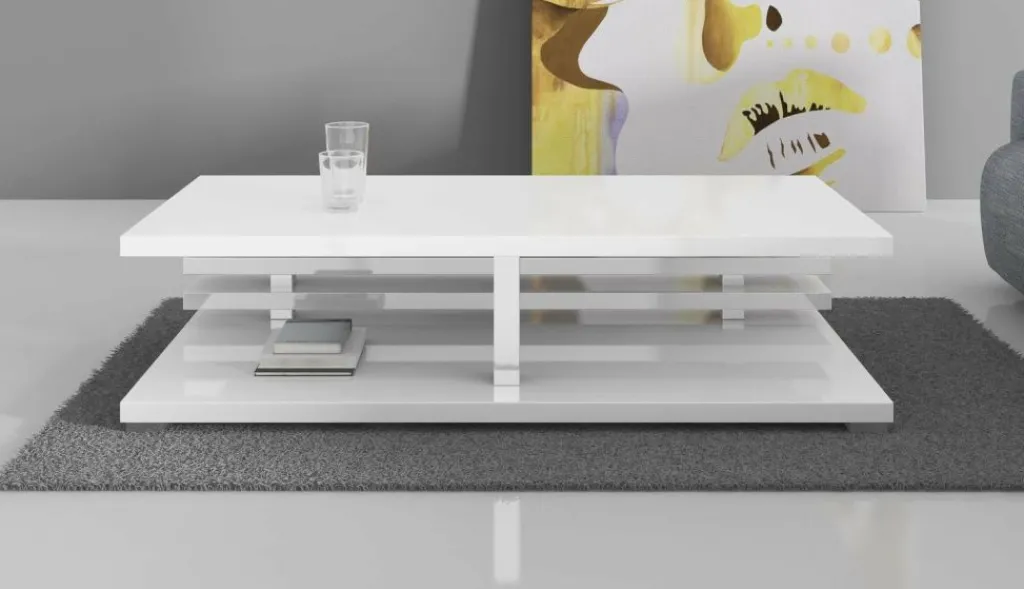 Salontafel Altea is een salontafel in exclusief design. De tafel is gemaakt in een hoogglans witte kleur, en valt op door zijn hoogte: 30 cm. De Altea heeft een verchroomde stang tussen boven- en onderblad, en staat op pootjes. De Altea heeft een lengte van 120 cm.