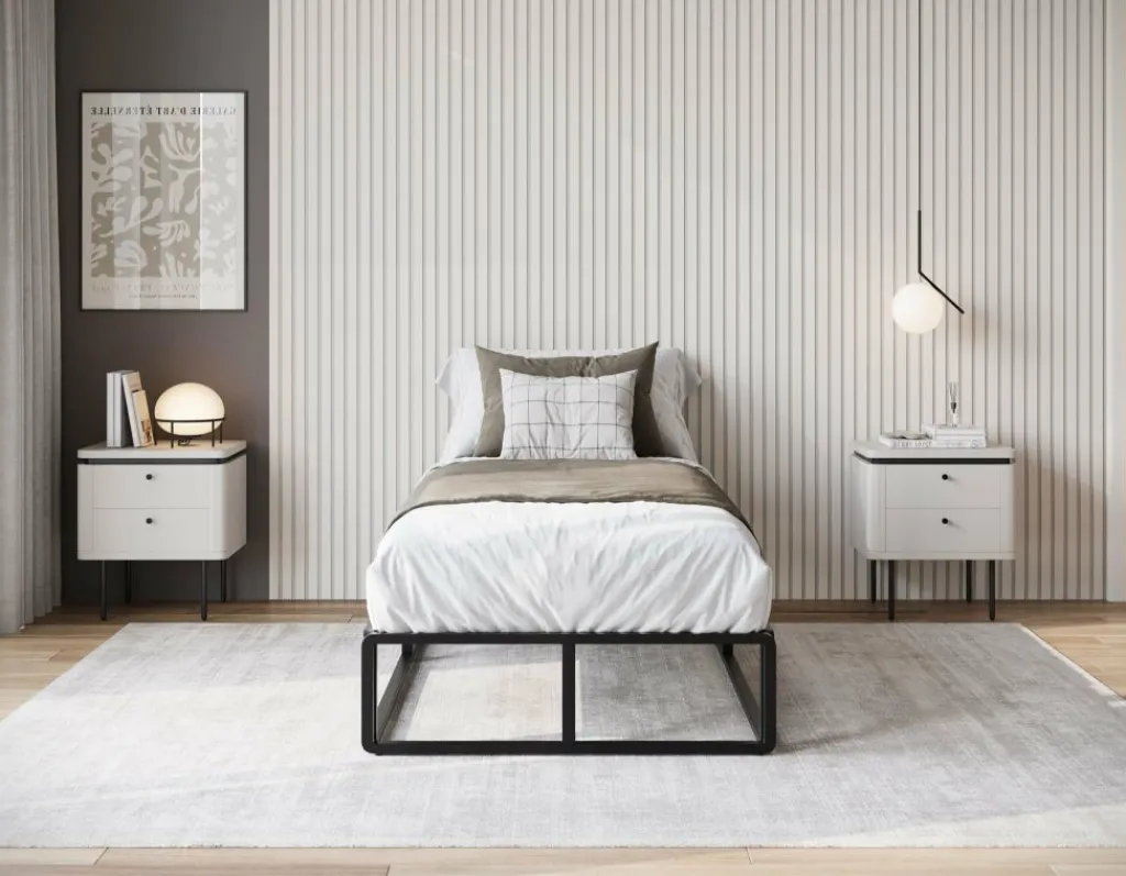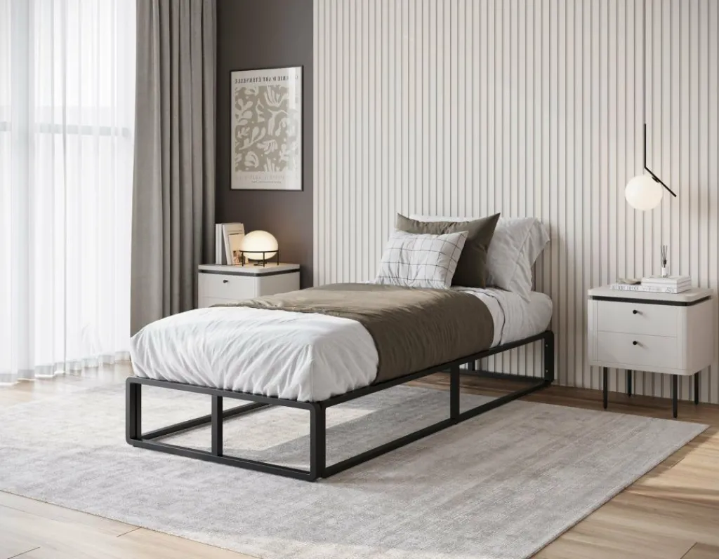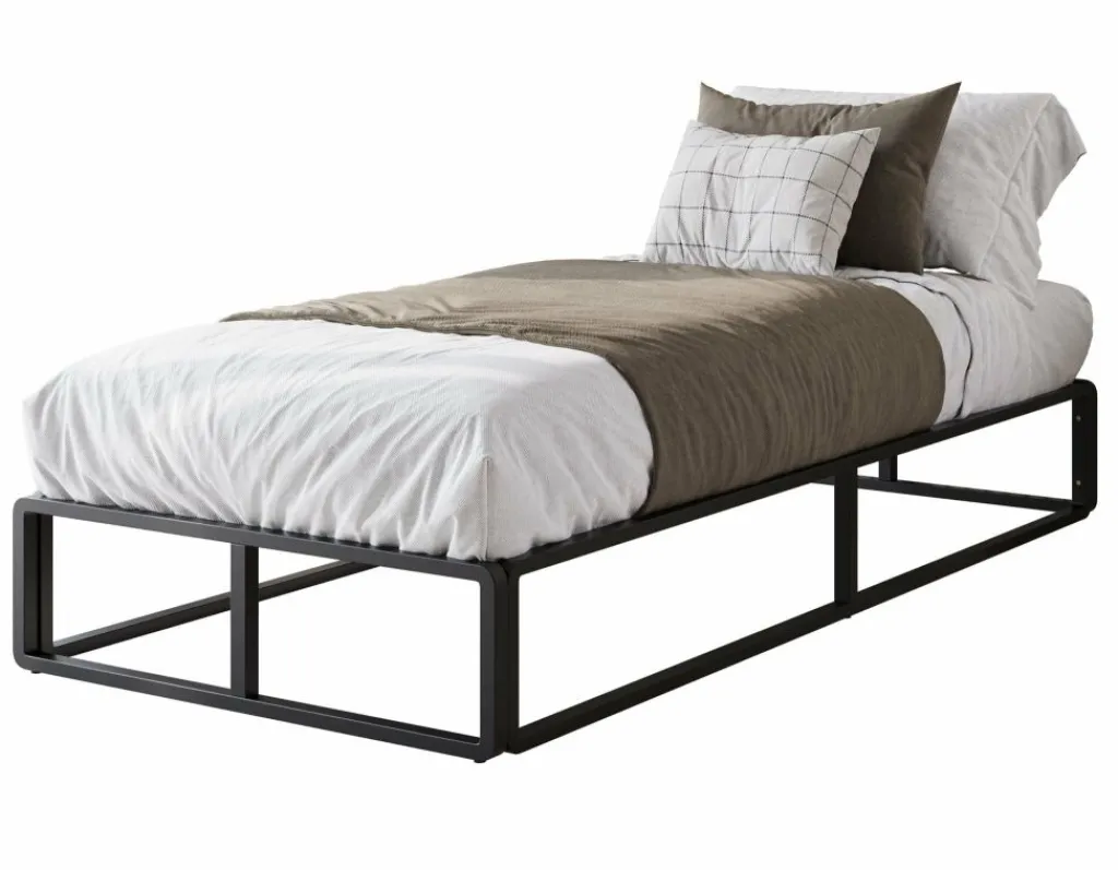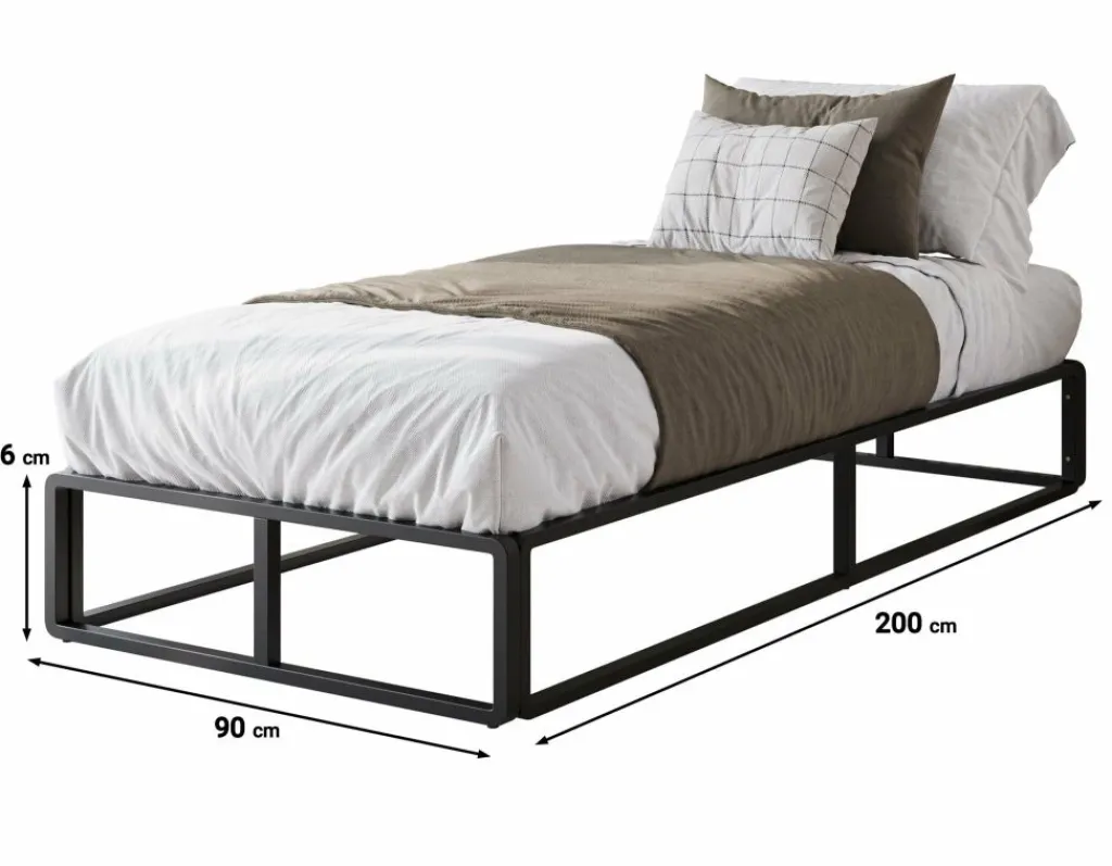 Eenpersoonsbed Andrea is een bed in de kleur zwart, geschikt voor matrasmaat 90×200 cm. Het bed is een eenvoudig design en is gemaakt van een metalen constructie. Je hoeft enkel nog een matras en kussens erop te leggen en het is klaar voor gebruik.