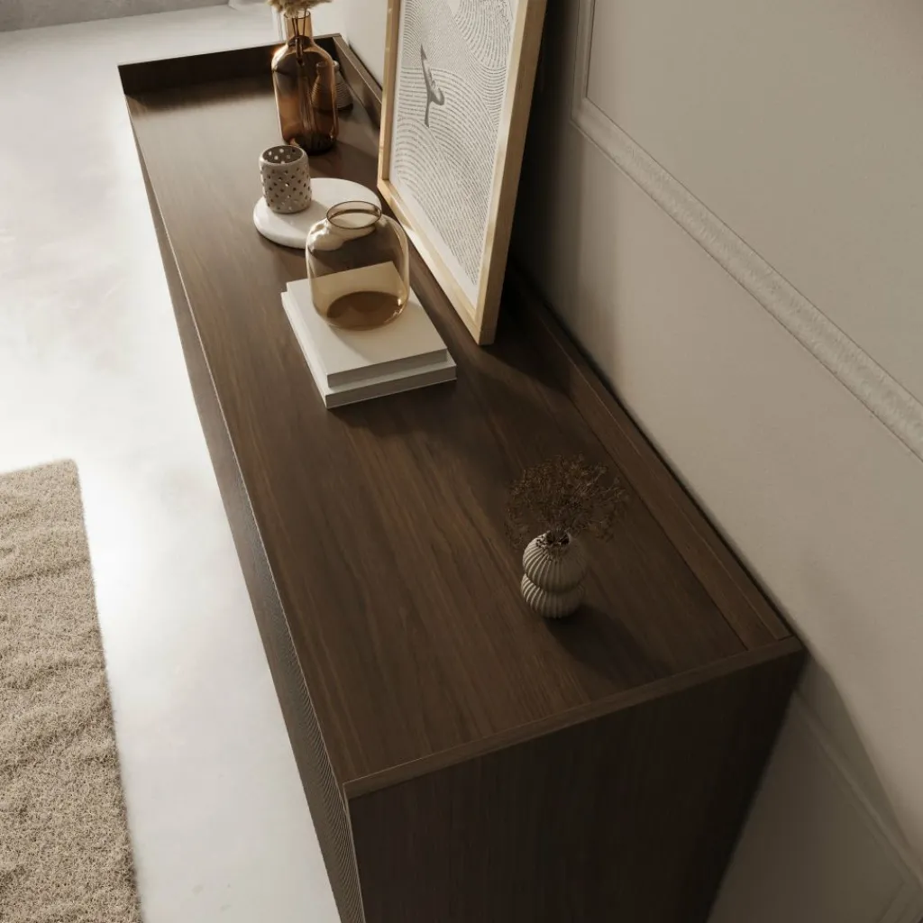Dressoir Asty in donker eiken is een elegante keuze voor wie houdt van een strak design met natuurlijke warmte en verfijnde details.