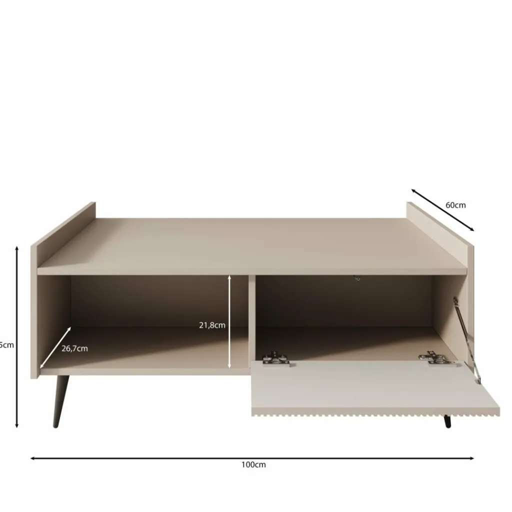 De tafel biedt praktische opbergruimte voor boeken, tijdschriften of accessoires, zodat je alles netjes kunt opbergen. De zwarte, taps toelopende poten voegen een subtiel retro-element toe en maken het geheel luchtig en elegant.