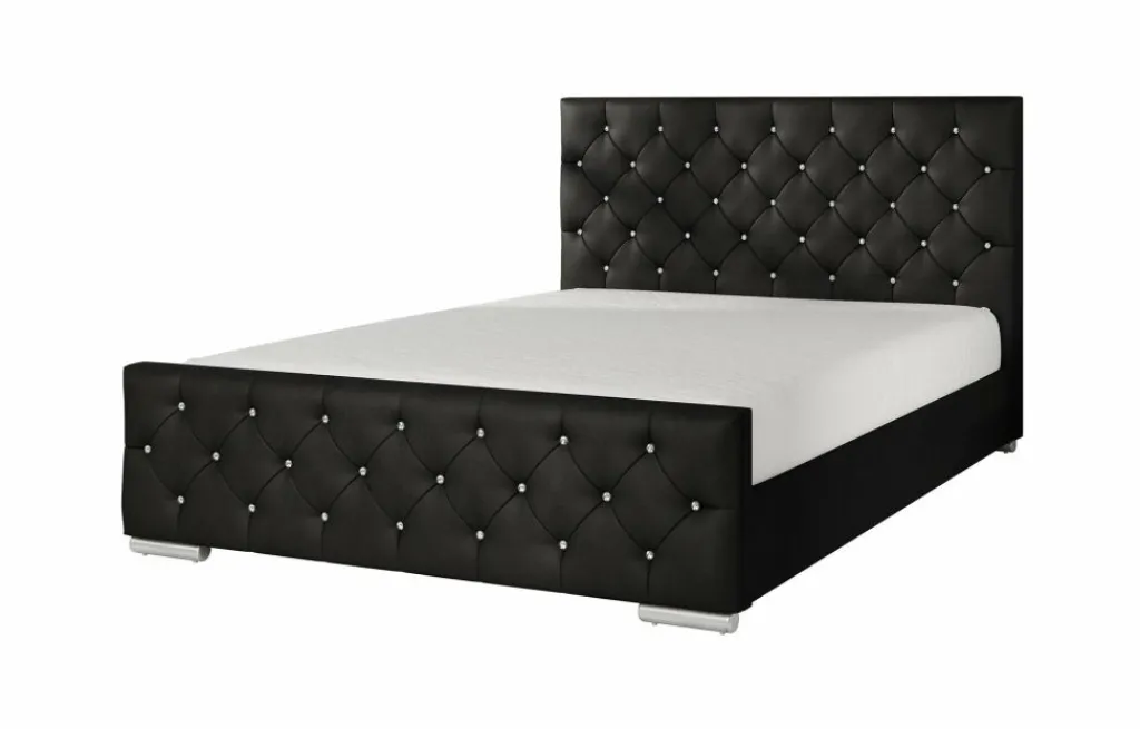 Tweepersoonsbed Aventura Diamond is een opvallend, modern bed en een echte eyecatcher. Dit model is afgewerkt met onderhoudsvriendelijk kunstleer in de kleur zwart. In zowel het hoofd- als voetenbord zitten diamanten. Het bed beschikt over een stevige constructie inclusief hoofdbord, voetbord en zijpanelen. Bij de prijs is ook een standaard lattenbodem inbegrepen. Tweepersoonsbed Aventura Diamond heeft een draagvermogen van 100 kg per ligzijde.