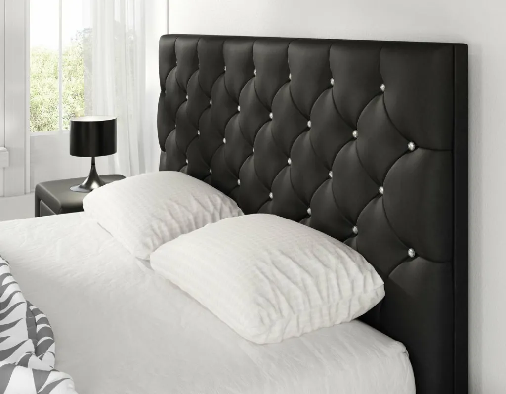 Tweepersoonsbed Aventura Diamond is een opvallend, modern bed en een echte eyecatcher. Dit model is afgewerkt met onderhoudsvriendelijk kunstleer in de kleur zwart. In zowel het hoofd- als voetenbord zitten diamanten. Het bed beschikt over een stevige constructie inclusief hoofdbord, voetbord en zijpanelen. Bij de prijs is ook een standaard lattenbodem inbegrepen. Tweepersoonsbed Aventura Diamond heeft een draagvermogen van 100 kg per ligzijde.