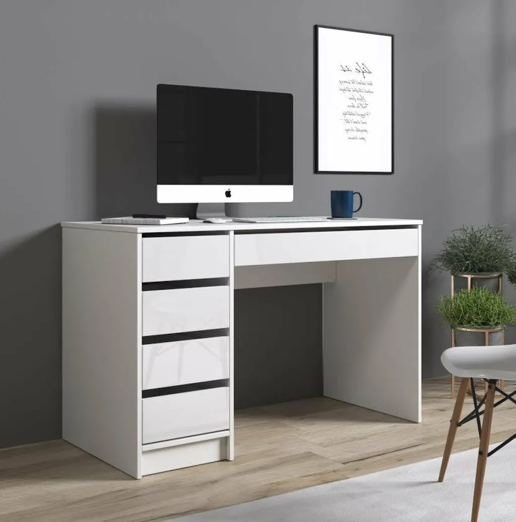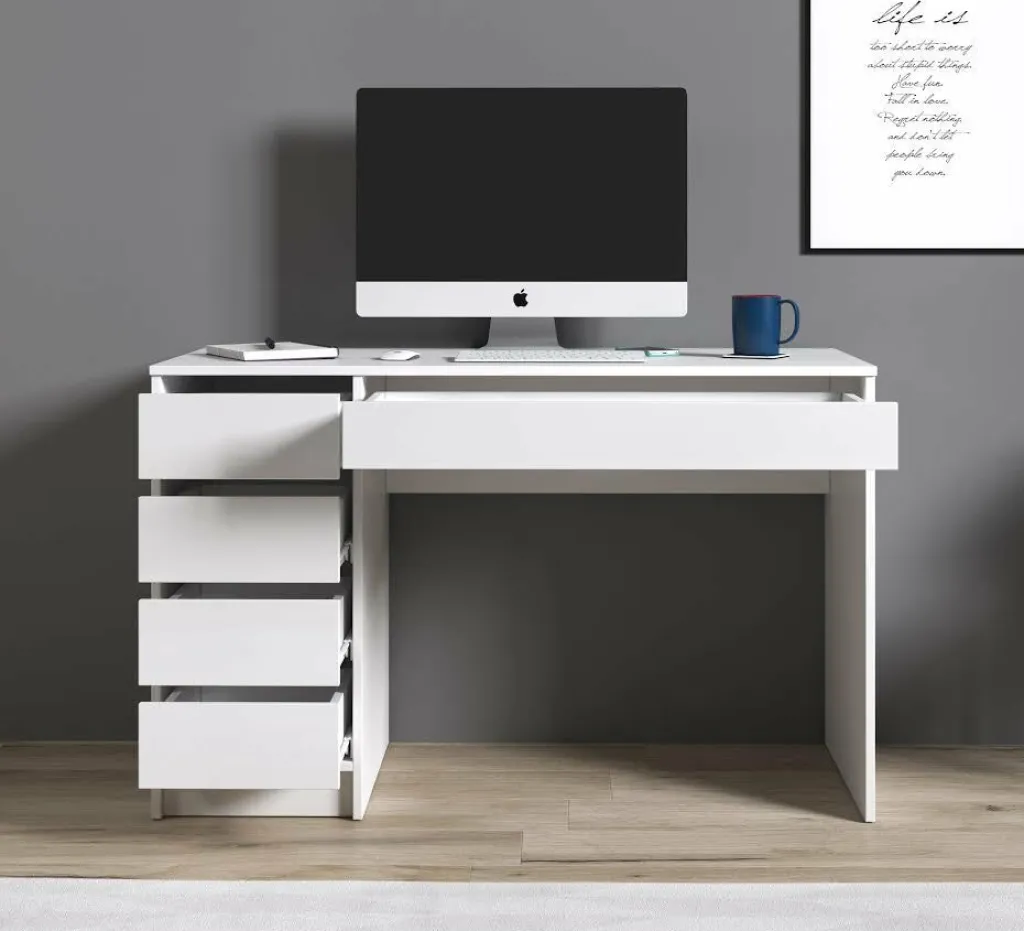 De lades van dit bureau zijn zowel links als rechts te monteren.