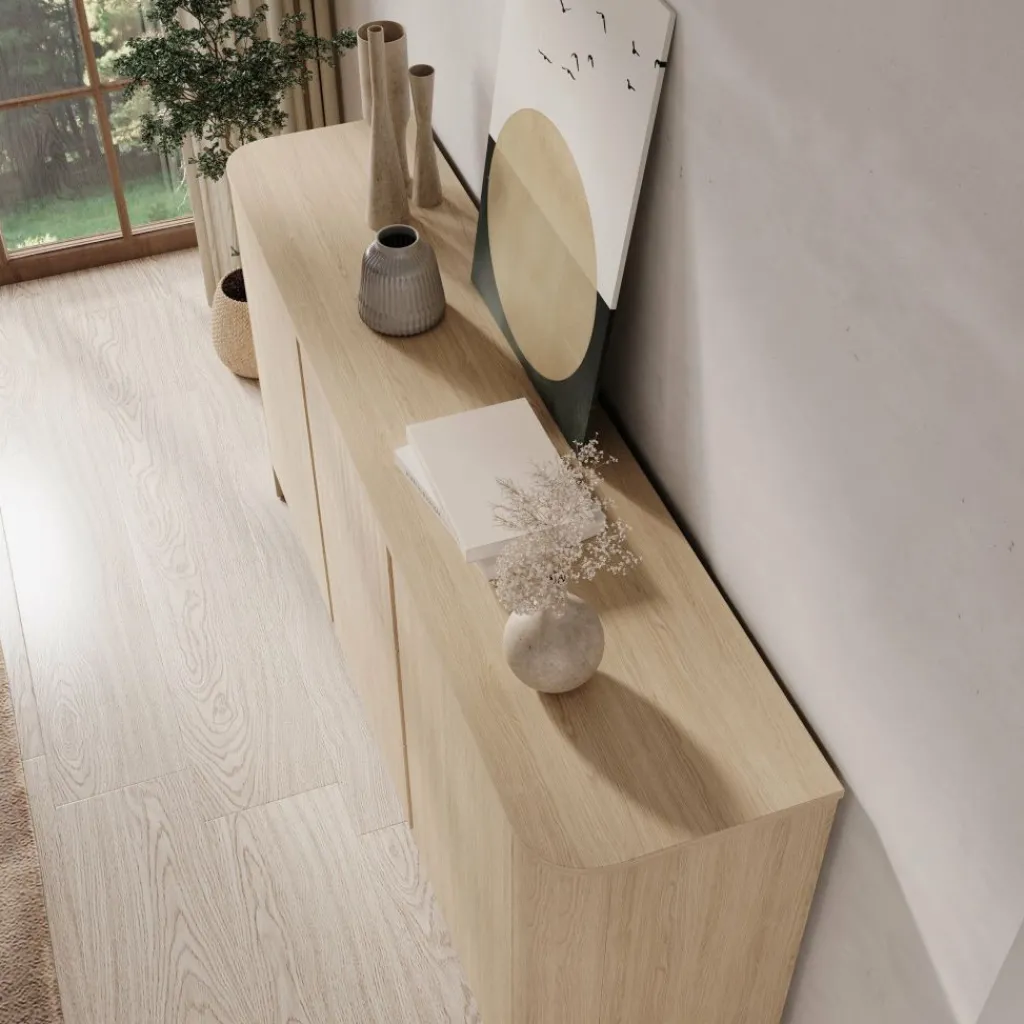 Dressoir Barbados is een elegant en praktisch meubel uitgevoerd in een warme eiken kleur. Het tijdloze ontwerp met afgeronde hoeken en een natuurlijke houtlook zorgt voor een sfeervolle uitstraling die in vrijwel ieder interieur tot zijn recht komt.