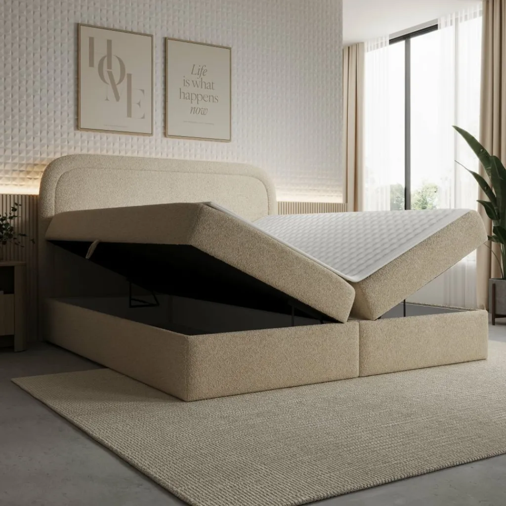 Onder beide matrassen bevindt zich een opbergvak met een draagvermogen van 80 kg per ligzijde. De vakken zijn eenvoudig te openen via een lus en worden ondersteund door veringen die de matrassen licht en soepel omhoog brengen.