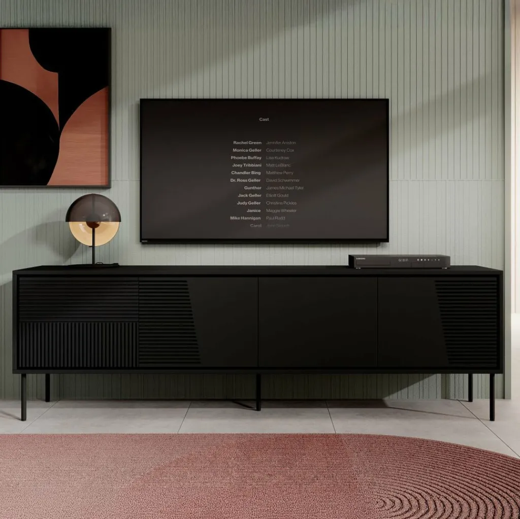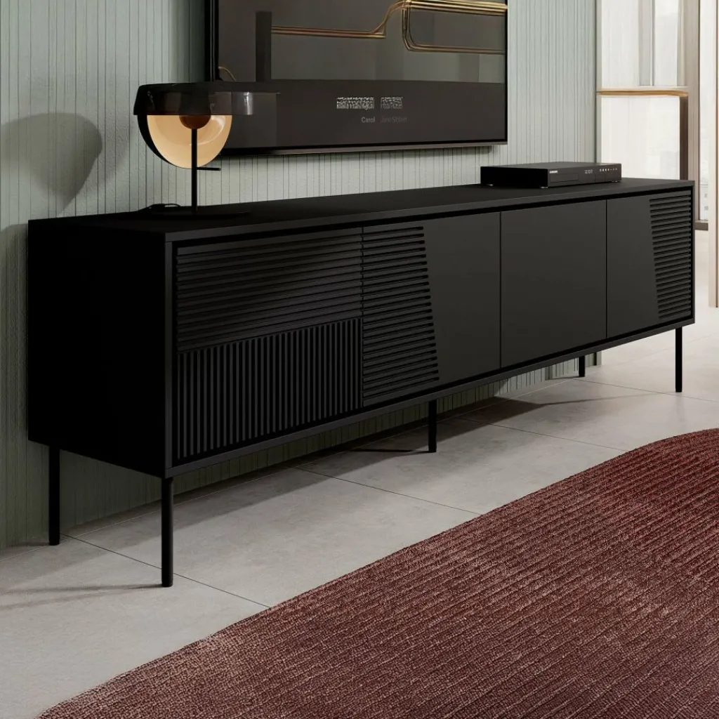 TV-Meubel Blanes beschikt over 4 deuren met daarachter 3 grote opbergvakken. Deze deuren zijn te openen met het push to open systeem. De voorkant van de kast heeft een strak lijnenspel waardoor het nog meer opvalt.