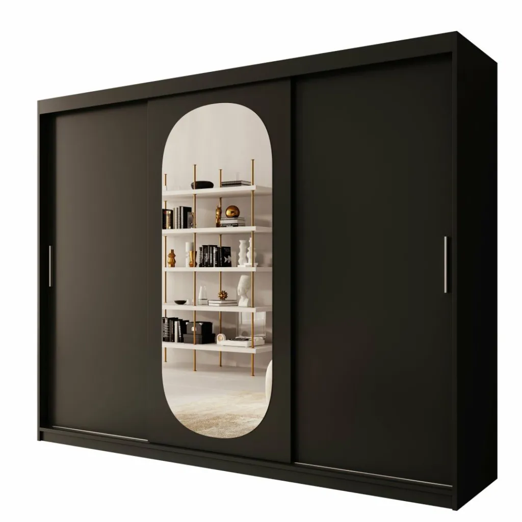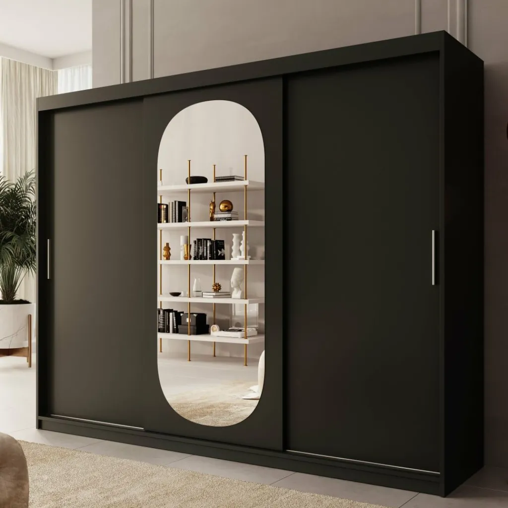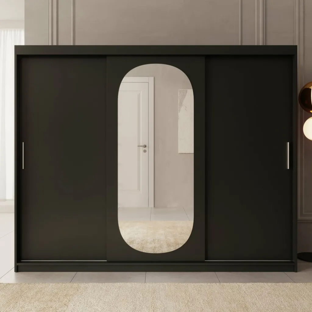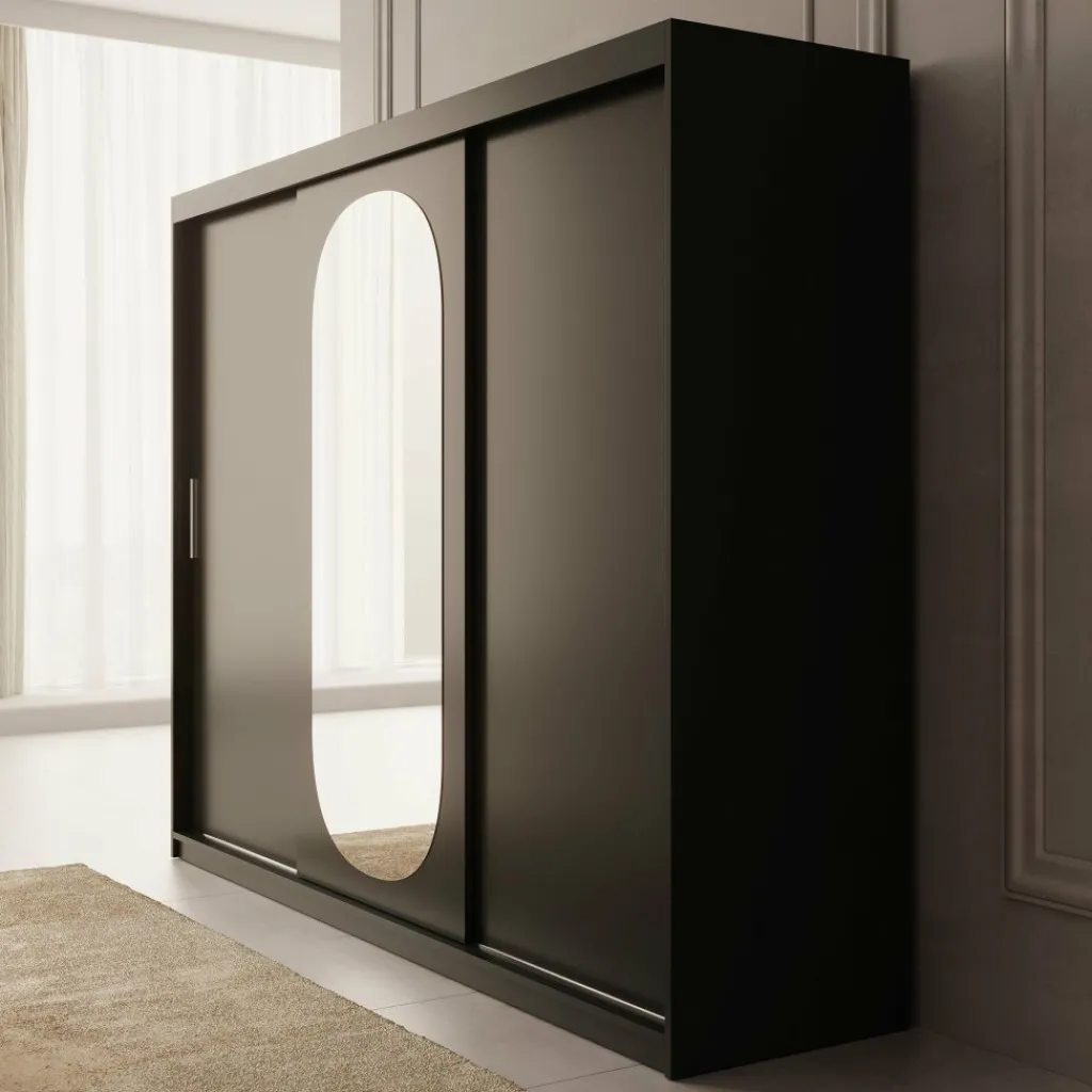 De zwarte kleur geeft de kast een stoere, moderne uitstraling en maakt van de Bodhi een echte blikvanger in de slaapkamer. Dankzij de grote spiegeldeur wordt de ruimte niet alleen optisch vergroot, maar ook voorzien van extra lichtreflectie. Perfect voor wie maximale opbergruimte zoekt, gecombineerd met een strak en stijlvol design.