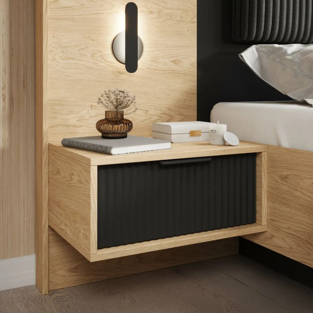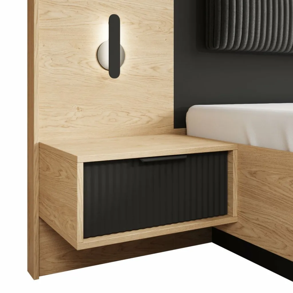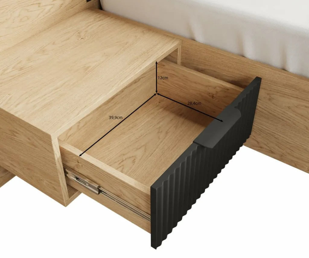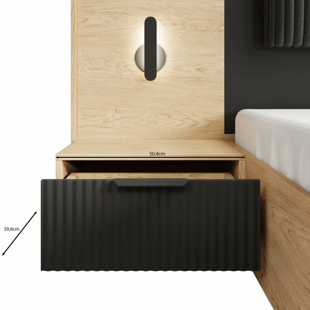 Beide kastjes zijn voorzien van een ruime lade die eenvoudig opent via de stevige handgreep. Boven elk kastje is geïntegreerde LED-verlichting verwerkt – ideaal als subtiel nachtlampje.
