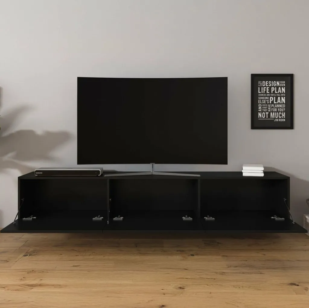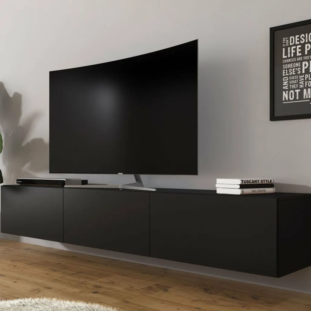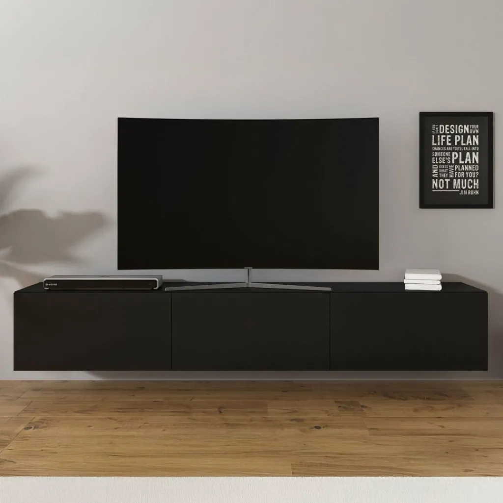 Het tv-meubel Bonzo is aan de muur op te hangen. Toch liever een staand model? Dat kan ook, door eenvoudig de bijgeleverde pootjes te monteren onder het meubel. De pootjes zijn zilverkleurig, gemaakt van kunststof en hebben een hoogte van 2 cm.
