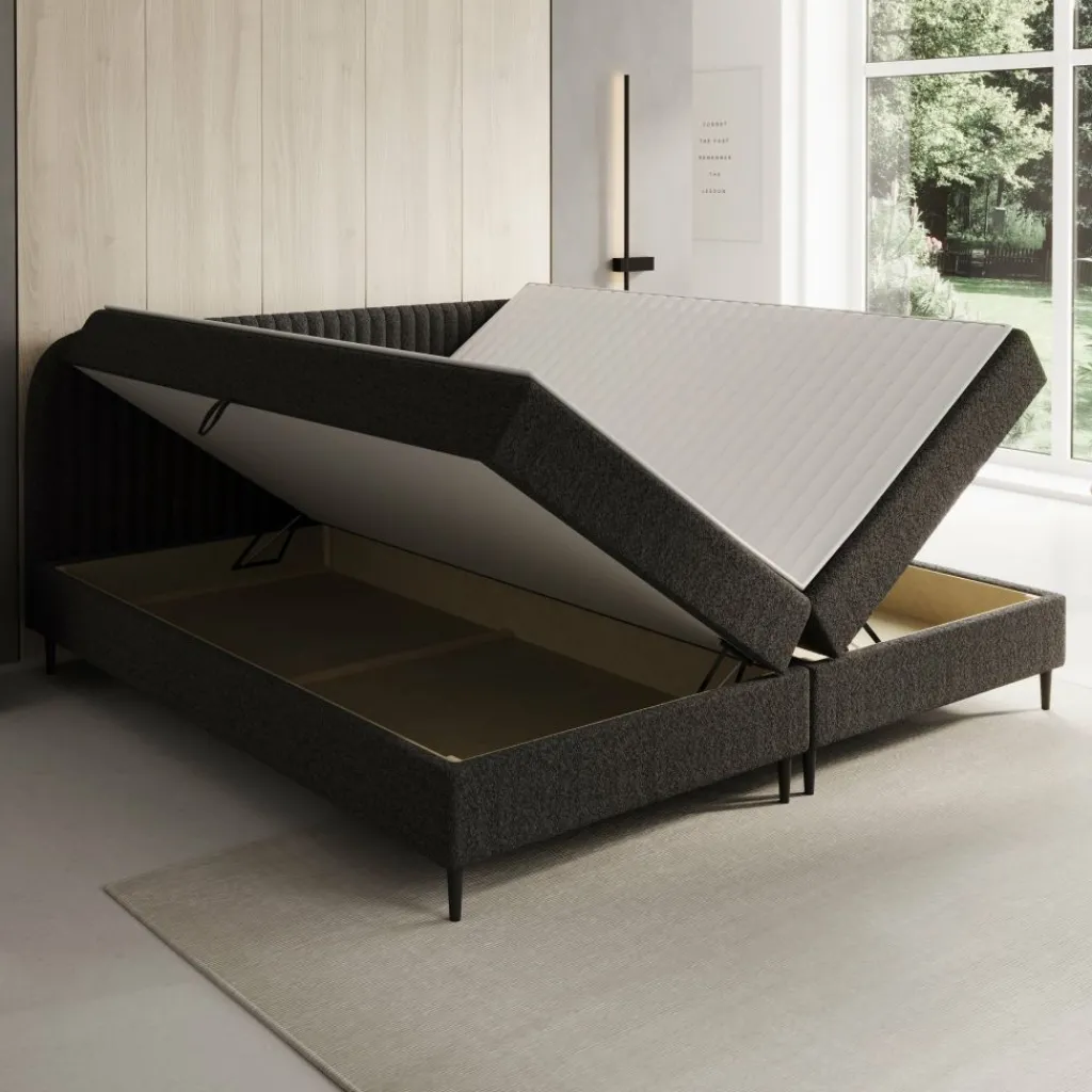 Onder beide matrassen bevindt zich een groot opbergvak, geschikt voor bijvoorbeeld dekens en kussens. Elk vak kan maximaal 10 kg dragen. De vakken zijn eenvoudig toegankelijk via een lus; met behulp van veringen komen de matrassen soepel omhoog.