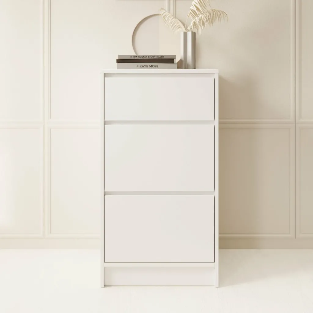 De kast is voorzien van drie ruime lades waarin je eenvoudig kleding, linnengoed of andere spullen kunt opbergen. Dankzij de afmetingen van 50x40x93 cm is hij ideaal voor kleinere ruimtes zoals de slaapkamer, hal of kantoor, zonder in te leveren op bergruimte.