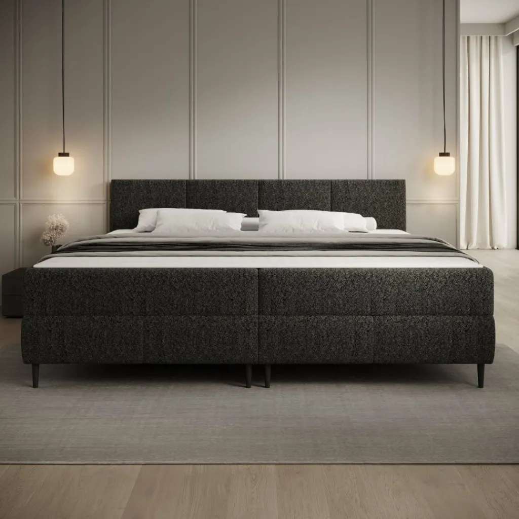 Het bed wordt geleverd met bonell-matrassen, opgebouwd uit bonellveren, een 3 cm T25-schuimlaag en een vezellaag van 100 g. De matrassen hebben een H3-hardheid en een draagvermogen van 100 kg per zijde.