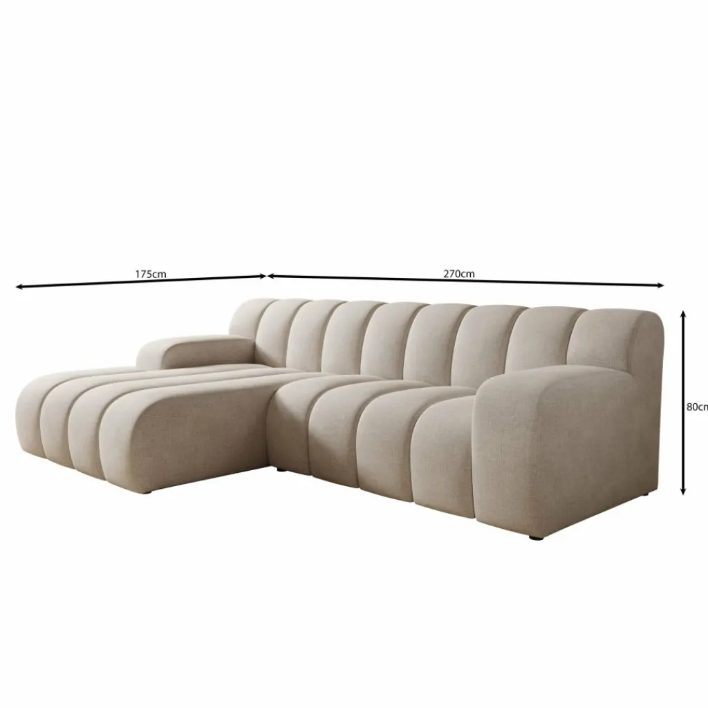 Ruim en praktisch Met 270 cm breedte en een chaise longue van 175 cm is er genoeg plek voor meerdere personen. De linker uitvoering betekent dat de chaise longue aan de linkerkant zit als je de bank van voren bekijkt.