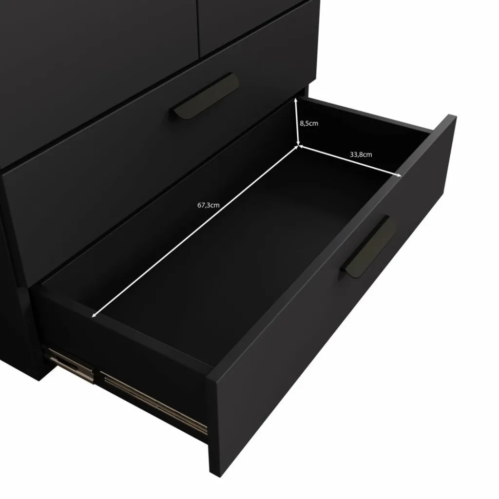 Achter de deuren vind je één legplank en een kledingroede over bijna de volledige breedte (ca. 70,8 cm). Ideaal voor het ophangen van jassen, overhemden of jurken. De onderste lades bieden extra ruimte voor kleding, beddengoed of accessoires. Dankzij het compacte formaat is de kast ook geschikt voor kleinere slaapkamers of als extra kast in de hal of logeerkamer.