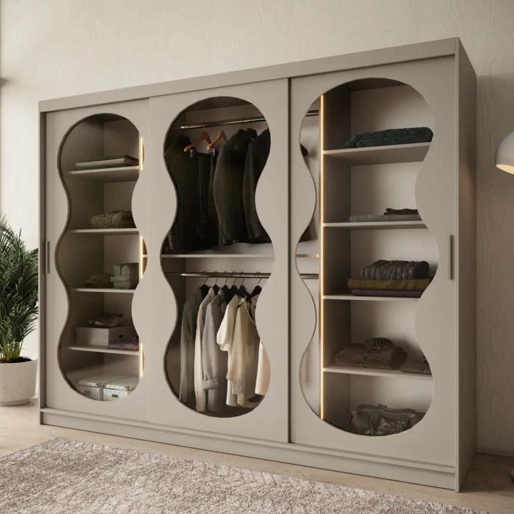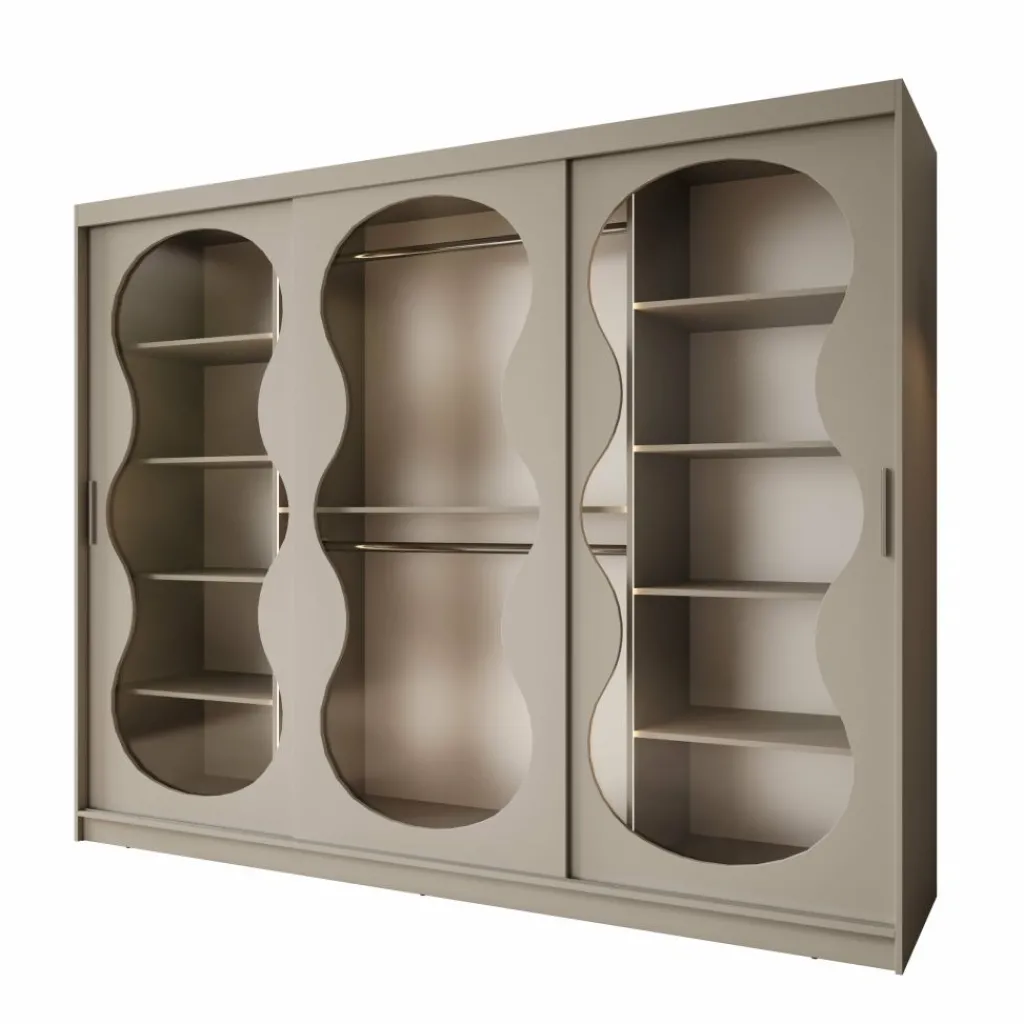 De lichte beige kleur maakt de kast geschikt voor uiteenlopende interieurstijlen en brengt een rustige, moderne sfeer in de slaapkamer. Een functionele en stijlvolle keuze voor wie veel opbergruimte zoekt zonder in te leveren op design.