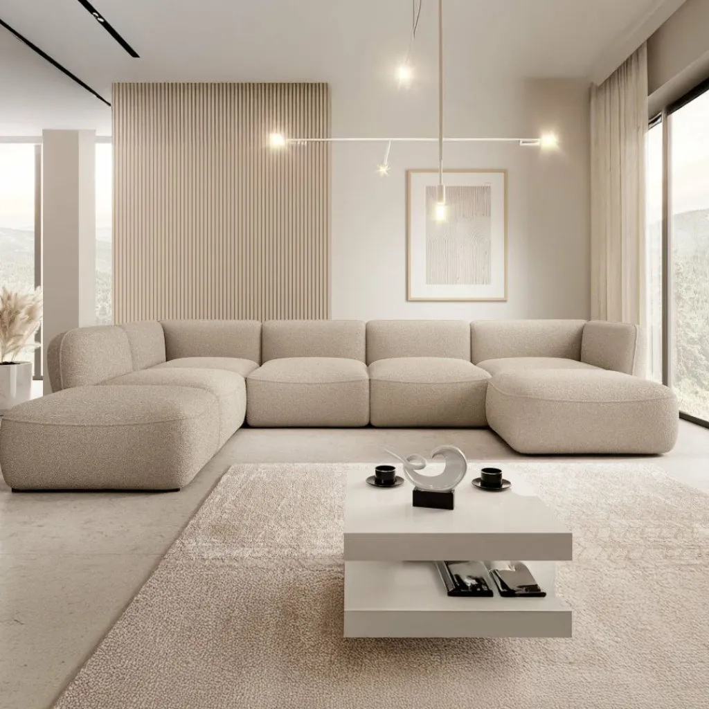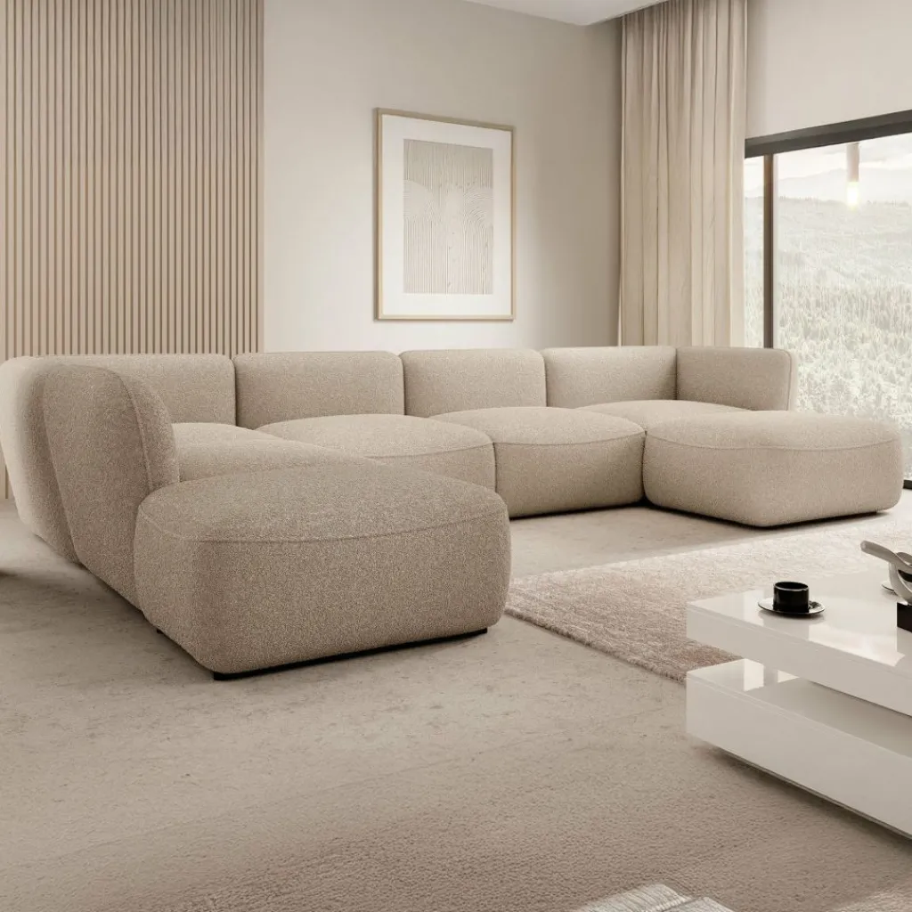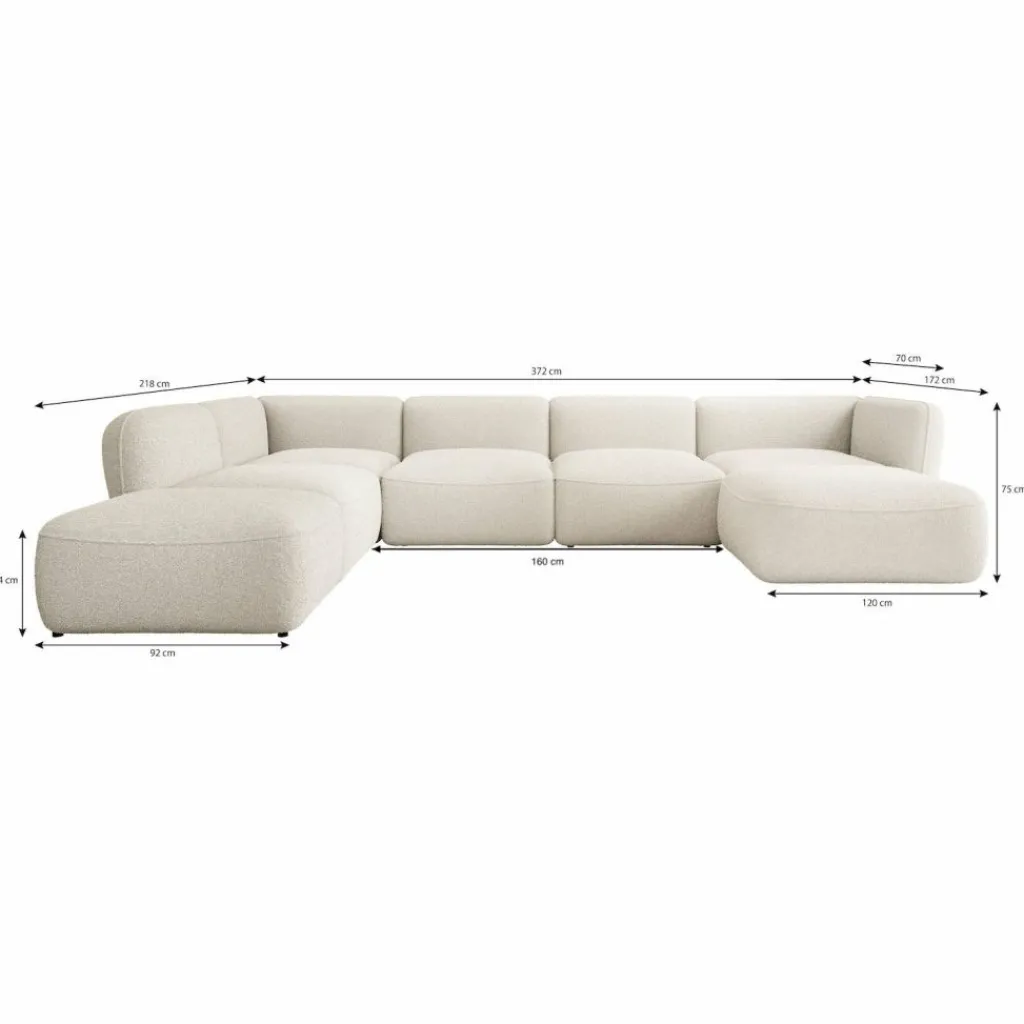 Hoekbank Caesar is een strakke bank gemaakt van teddy stof met een moderne uitstraling. Dit model is voorzien van een ruim zitgedeelte in U-vorm. Deze hoekbank beschikt over vaste zitkussens en vaste rugkussens en ook de hoezen zijn niet afneembaar. De bank is voorzien van 2 ruime liggedeeltes.
