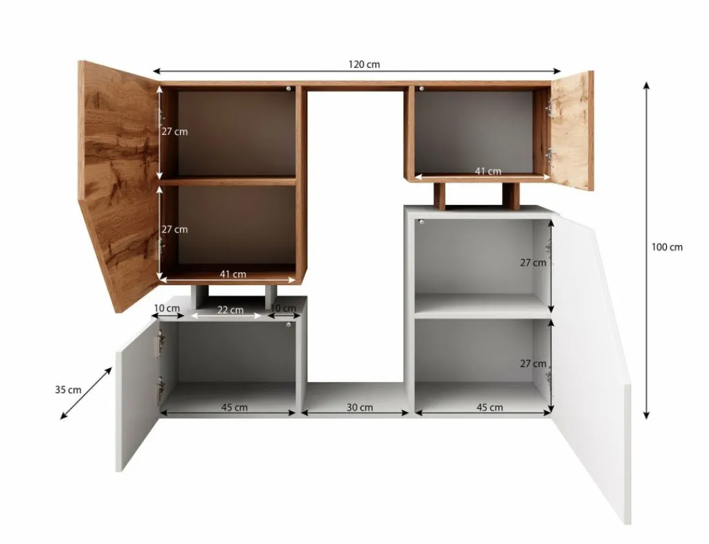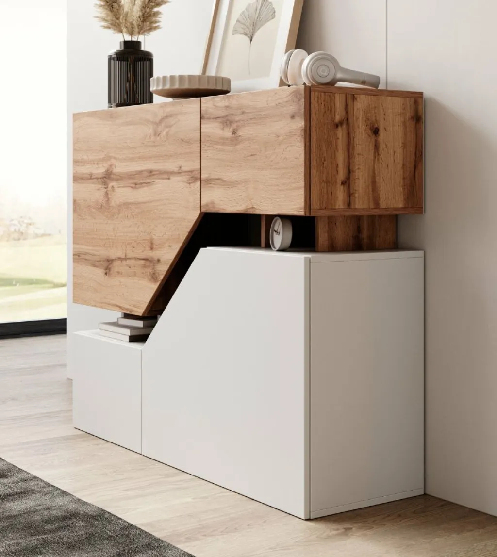 De wit met eiken kleurencombinatie zorgt voor een frisse en moderne uitstraling. Hierdoor is de kast geschikt voor verschillende interieurstijlen. De Canberra past moeiteloos in zowel een Scandinavisch, industrieel als landelijk interieur.
