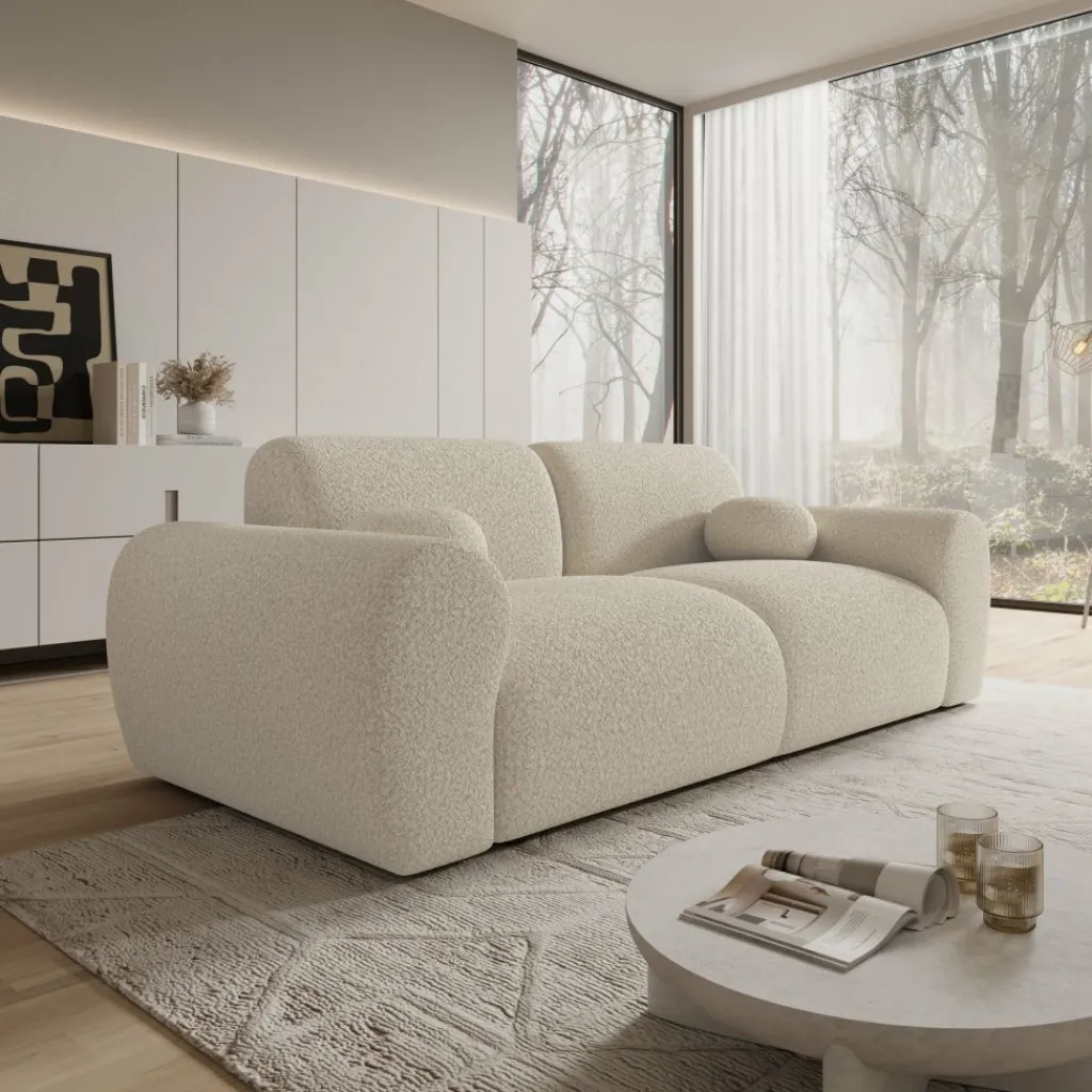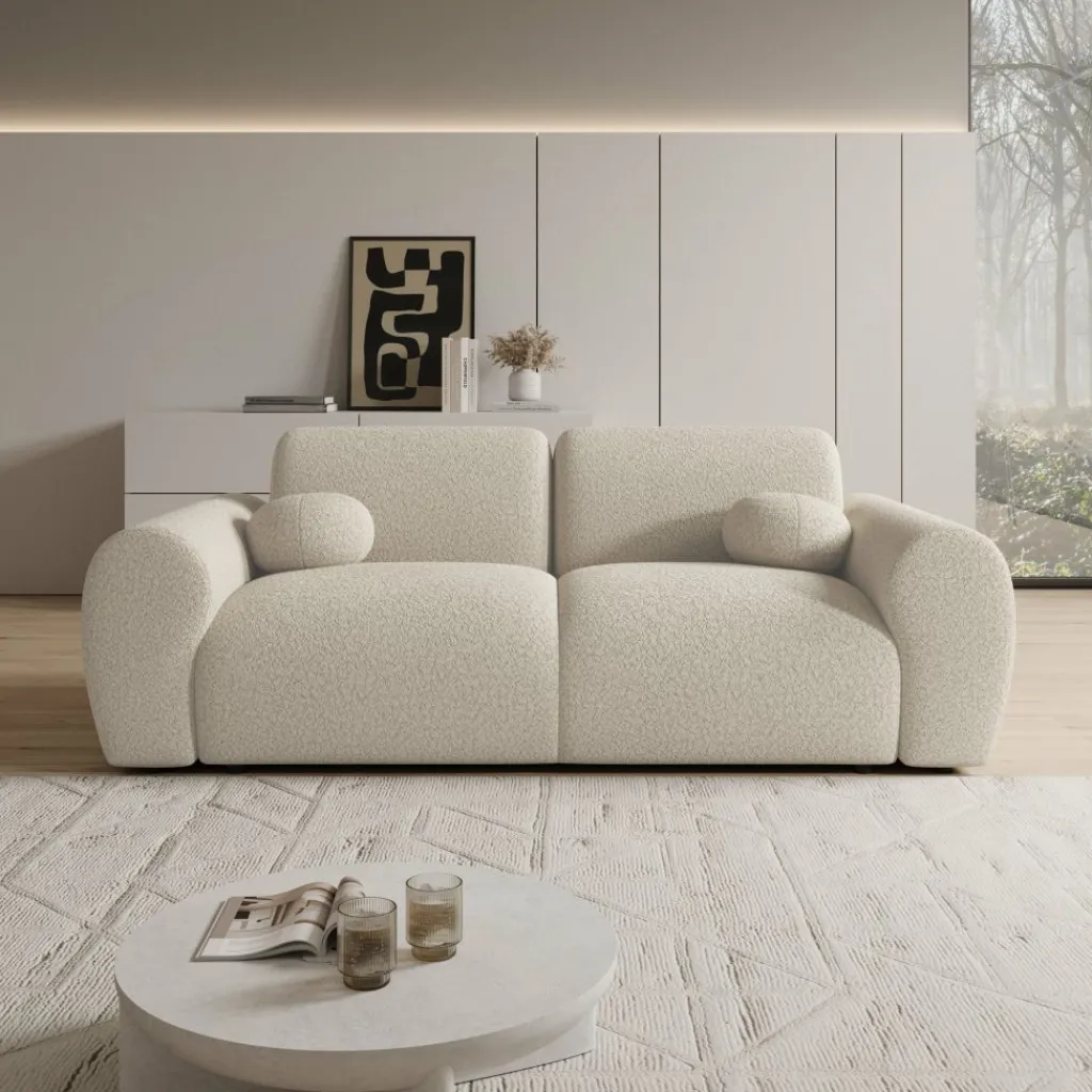 De Canyon 2-zitsbank heeft een royale, zachte vormgeving met afgeronde lijnen en een ruim zitvlak. De beige teddystof geeft een rustige uitstraling en voelt uitnodigend aan, ideaal voor ontspannen avonden in de woonkamer. Door het brede, diepe zitkussen en de stevige rug vormt de bank een comfortabele plek om te zitten of onderuit te zakken met een boek of serie.