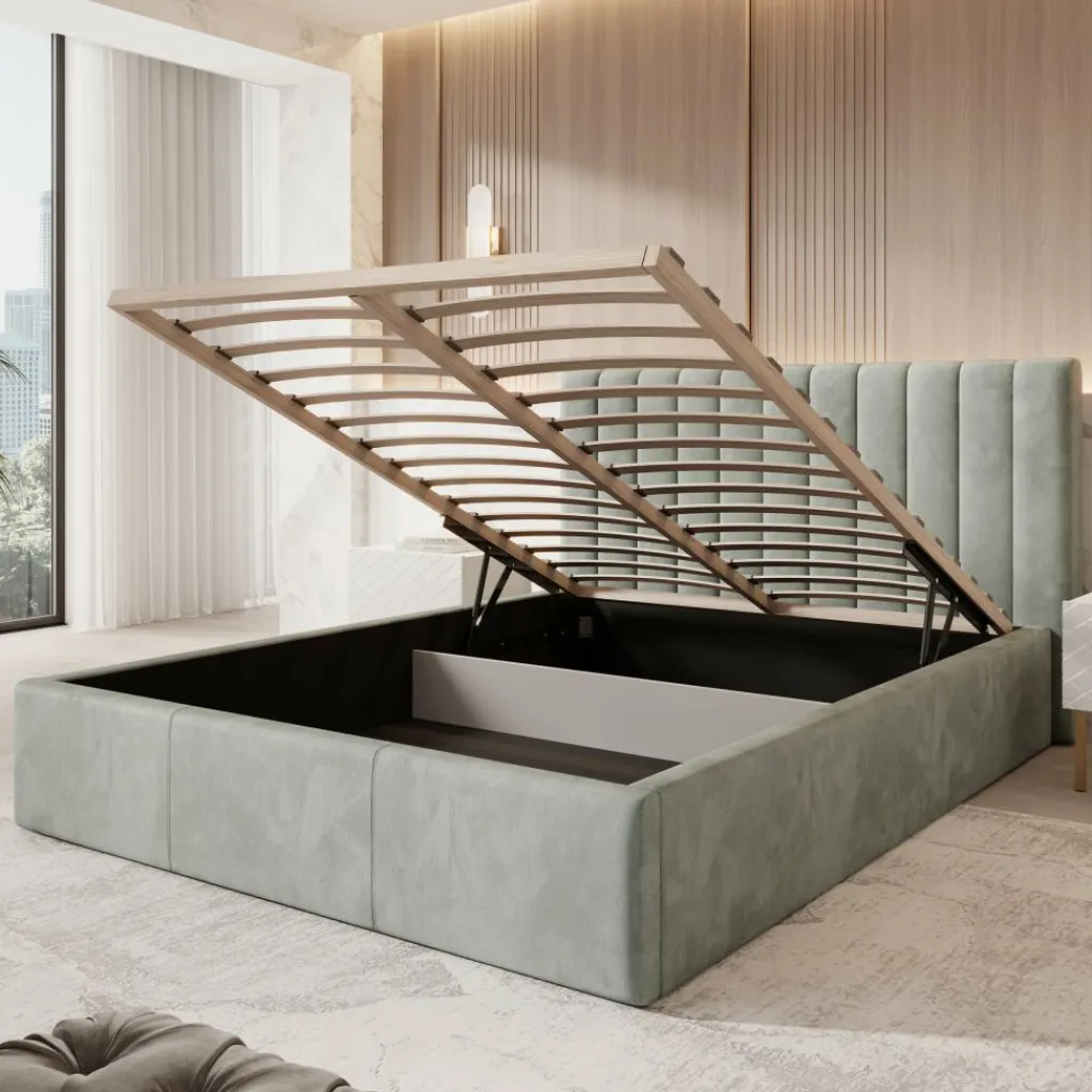 Onder de lattenbodem bevindt zich een praktische opbergruimte, perfect voor het bewaren van beddengoed, kussens of andere spullen. Zo benut je de ruimte optimaal zonder in te leveren op design.