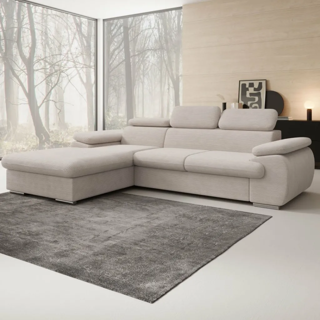Hoekbank Cordoba is een comfortabele L-vormige bank met een eigentijdse uitstraling. De combinatie van het ruime loungegedeelte en de 2-zitsbank zorgt ervoor dat je met 3 tot 4 personen op de bank kunt zitten. De Cordoba is bekleed met een zachte ribstof in een warme beige kleur die moeiteloos past in elk interieur.