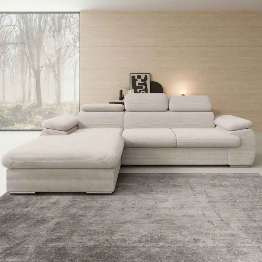 Deze variant is links: wanneer je recht voor de bank staat, bevindt het loungegedeelte zich aan de linkerkant.