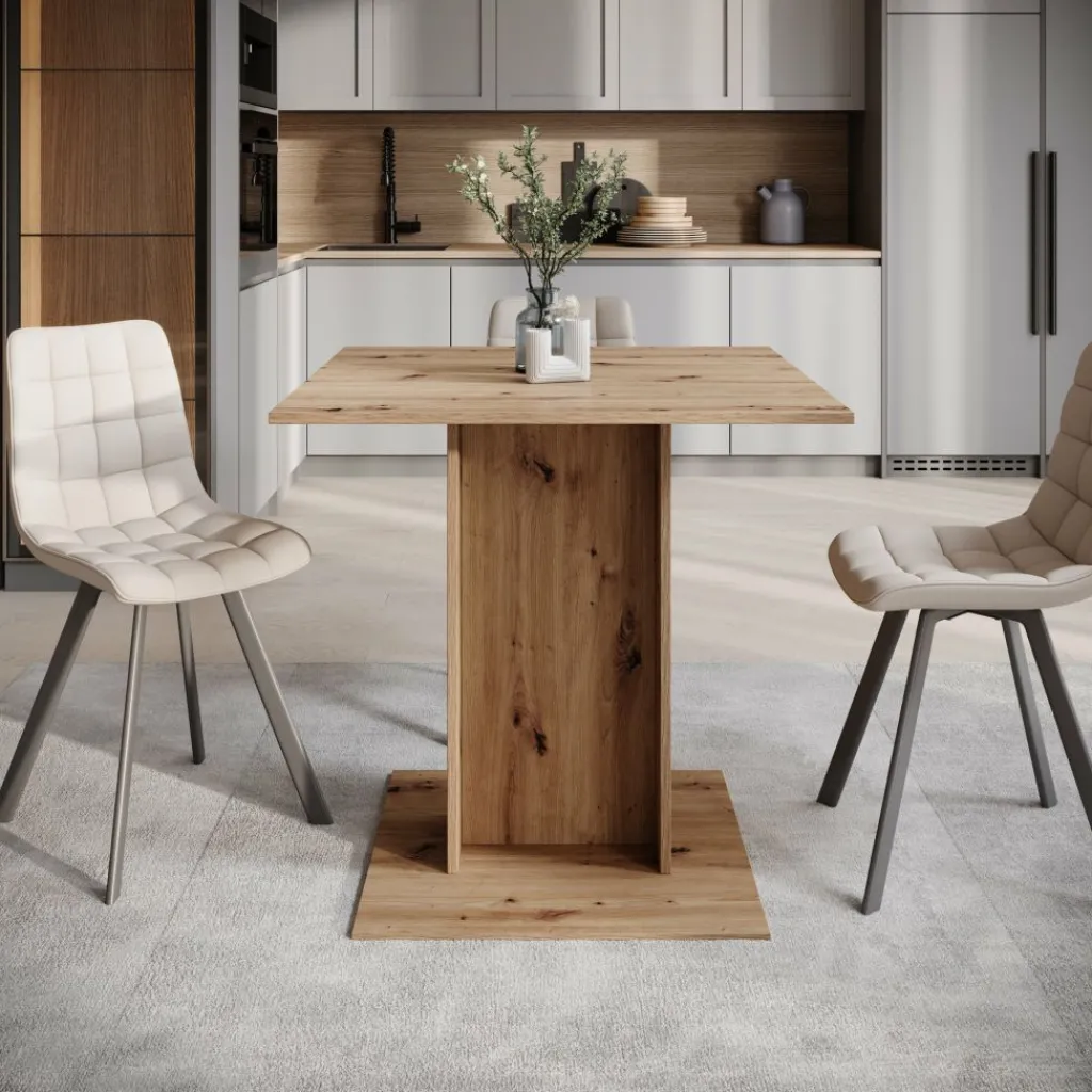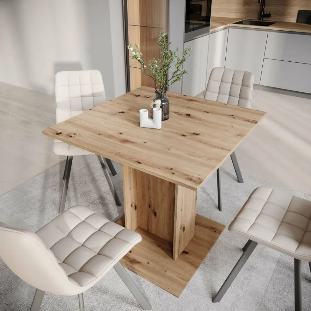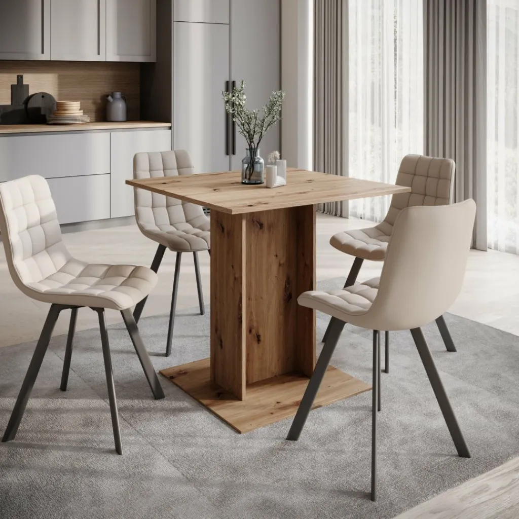De Cova eetkamertafel is een compacte tafel die geschikt is voor kleinere eetruimtes, appartementen of keukens. Met een afmeting van 80 x 80 x 76 cm biedt de tafel plaats aan twee tot vier personen en neemt hij weinig vloeroppervlak in.