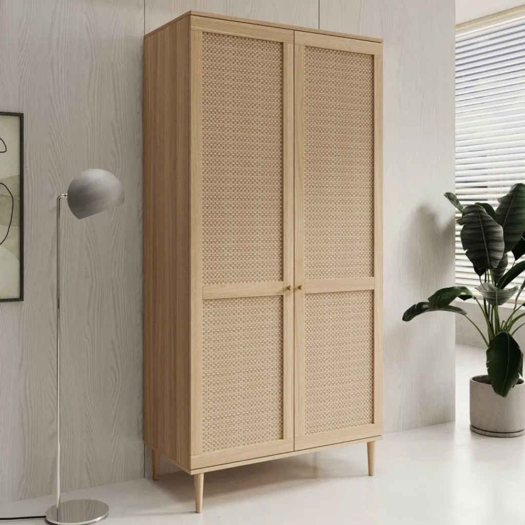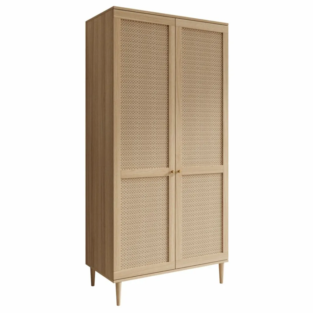 De Crimson kledingkast met 2 deuren biedt een praktische opbergoplossing voor de slaapkamer. De kast is uitgevoerd in een eikenpatroon en heeft strak afgewerkte deuren zonder opvallende details, waardoor het geheel een rustige en evenwichtige uitstraling heeft.