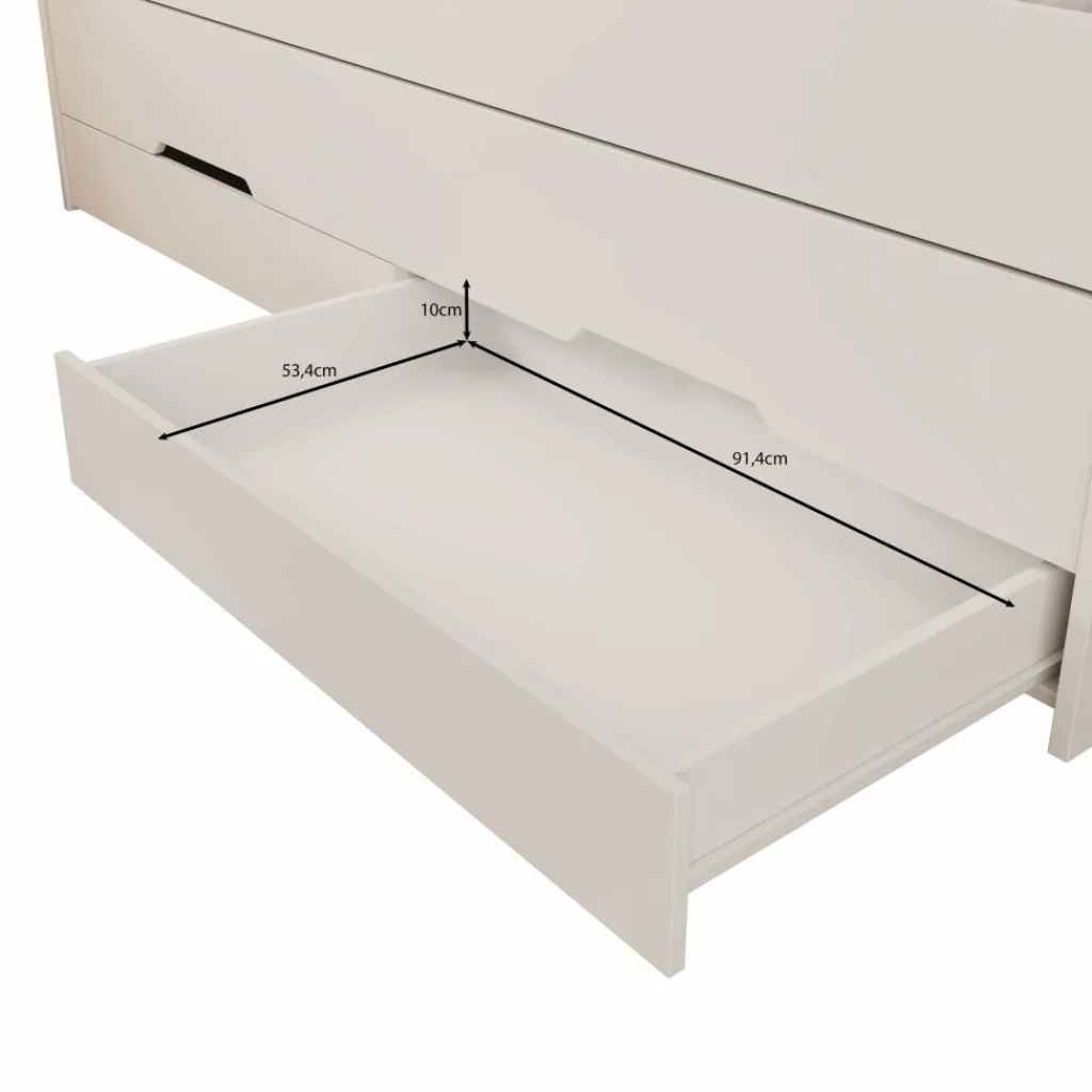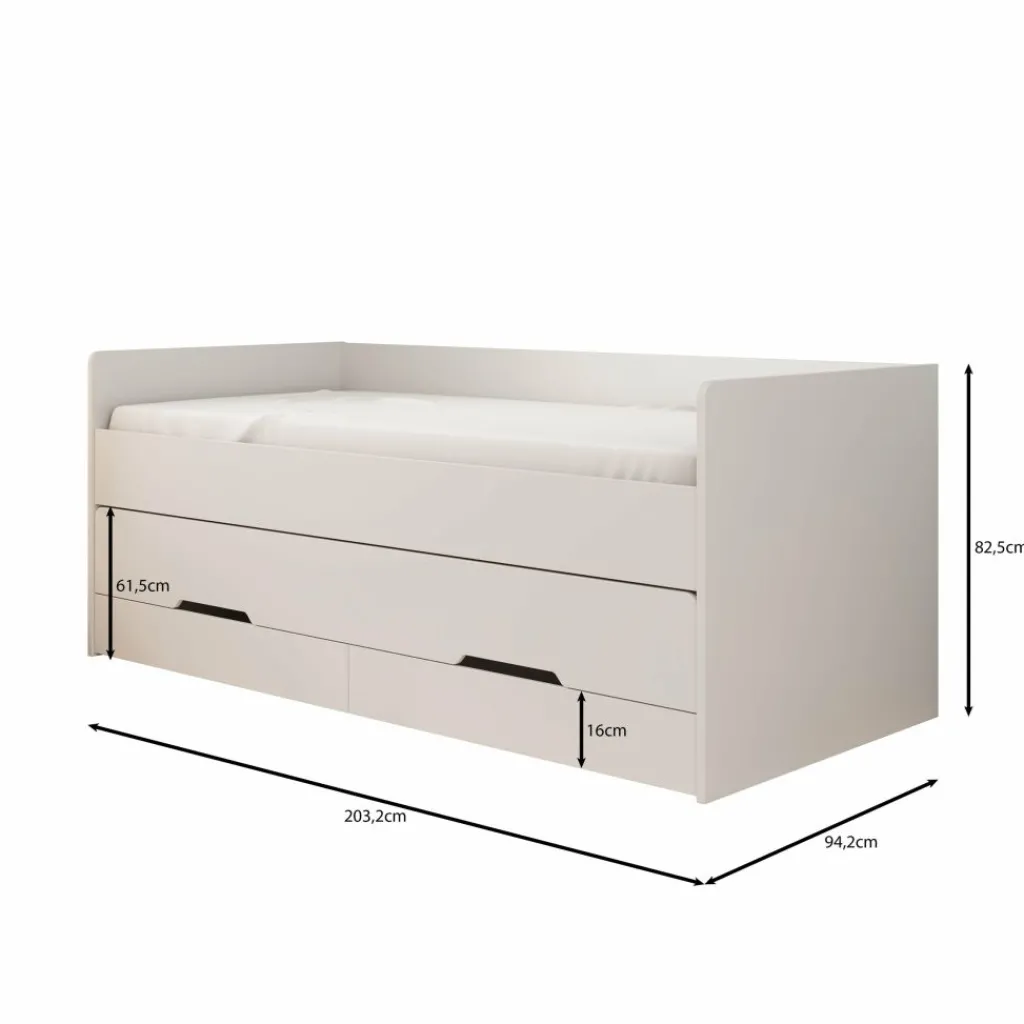 Met afmetingen van 203x94x83 cm past het Daiquiri bed eenvoudig in de meeste kinderkamers. Het model wordt geleverd zonder matras. Dankzij de combinatie van opbergruimte en een extra bed is dit een functionele keuze voor ruimtes waar je slim met de beschikbare plek wilt omgaan.