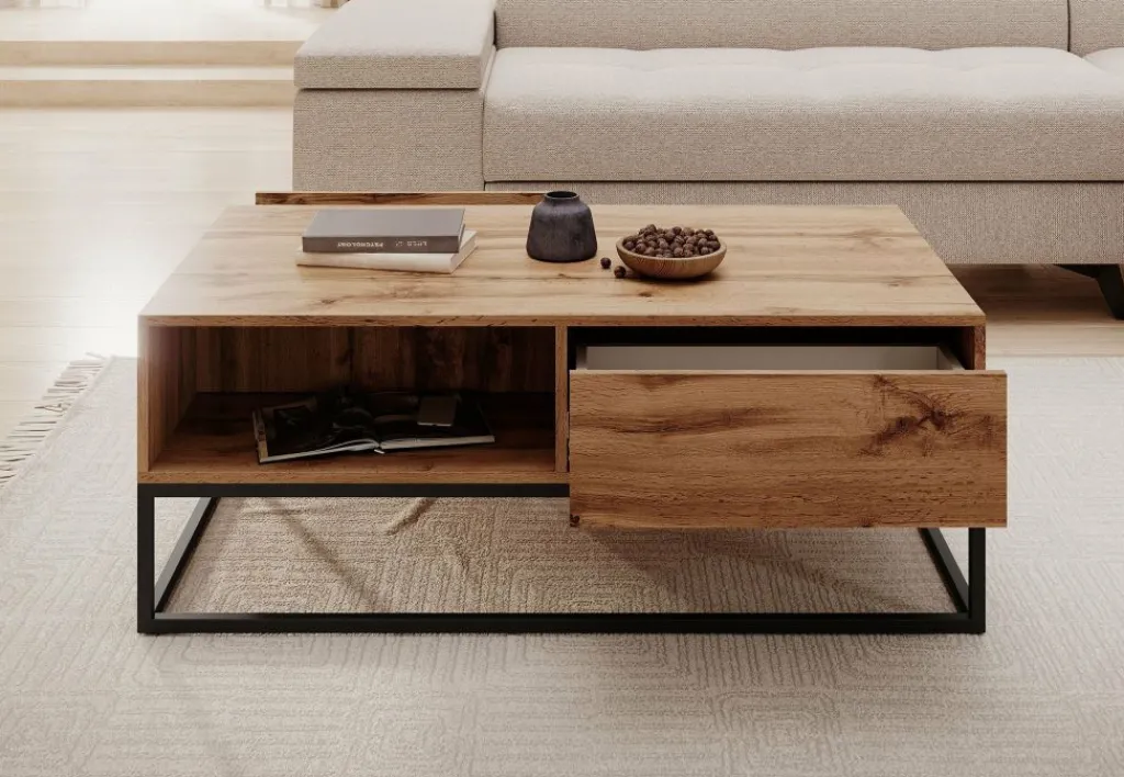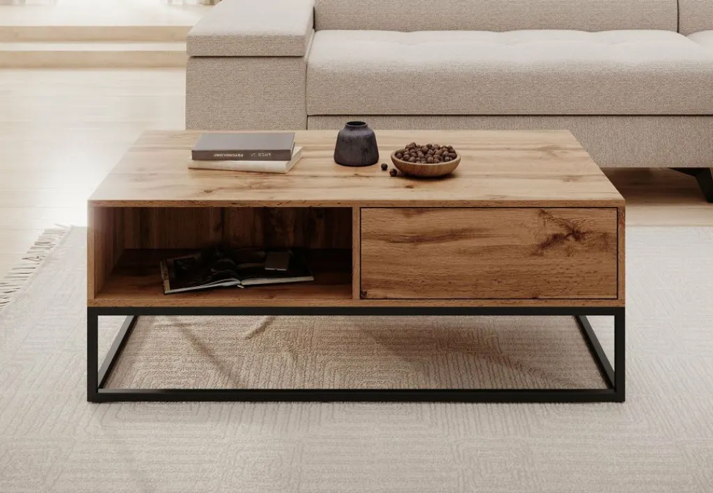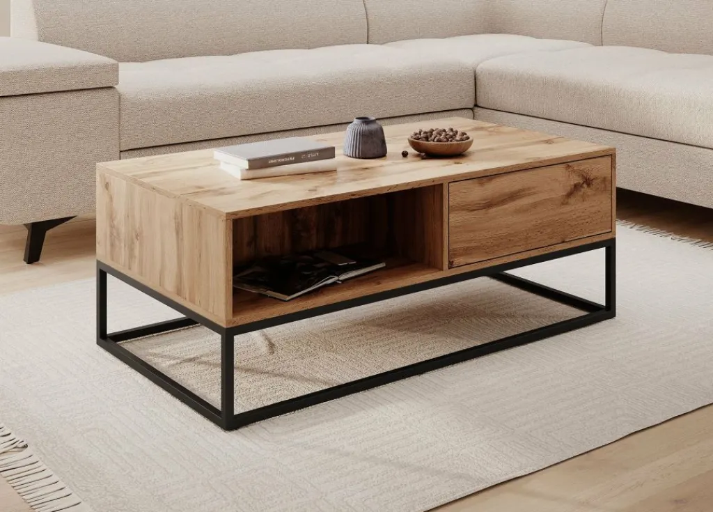 De tafel is voorzien van één lade (57 cm breed) en een open vak, ideaal voor het opbergen van afstandsbedieningen, tijdschriften of andere spullen die je binnen handbereik wilt houden.