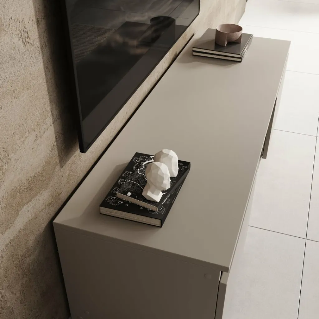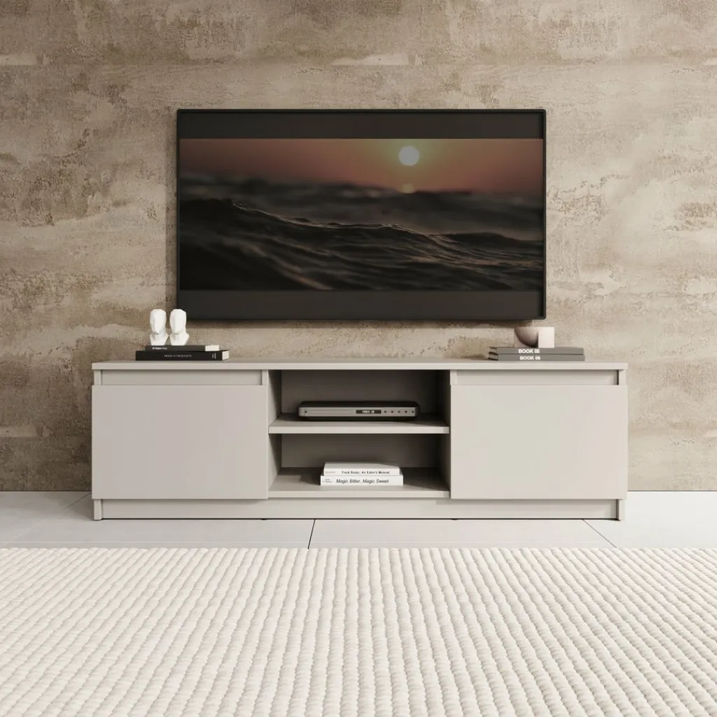TV-Meubel Diaz is een modern tv-meubel met een strakke uitstraling. De Diaz is gemaakt van een stevige spaanplaatconstructie in een beige kleur.
