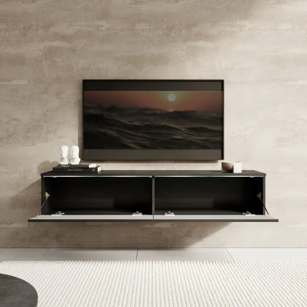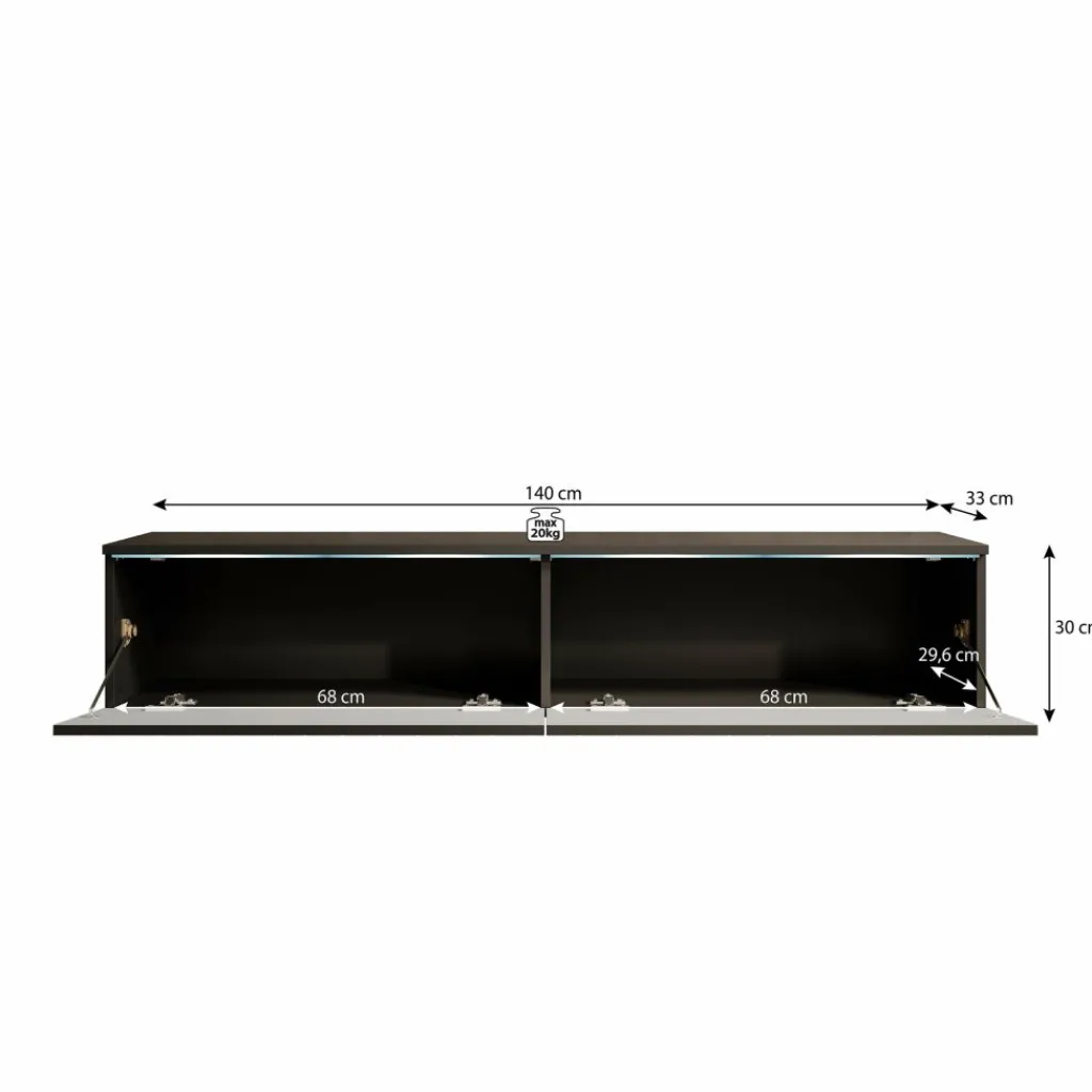 Dit tv-meubel kan eenvoudig aan de muur worden bevestigd voor een zwevend effect, maar is ook te gebruiken als staand model. Met de bijgeleverde zilverkleurige kunststof pootjes van 2 cm hoog creëer je in een handomdraai een andere look. Dankzij de veelzijdige mogelijkheden past Dixon perfect in zowel moderne als strakke interieurs.