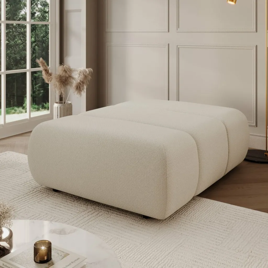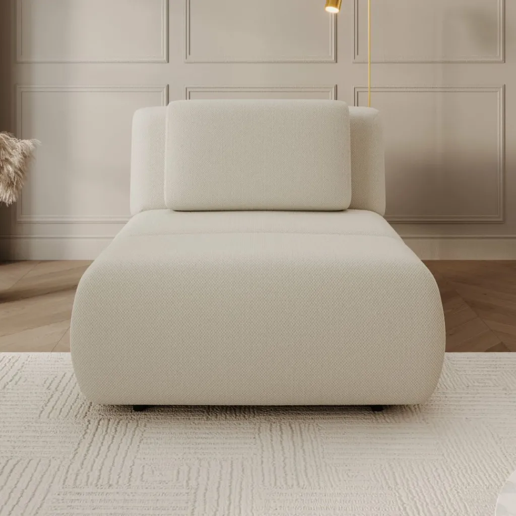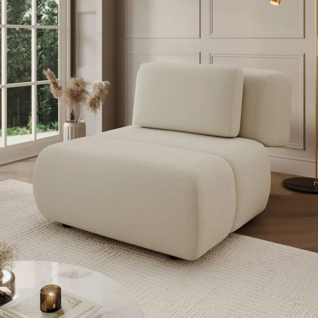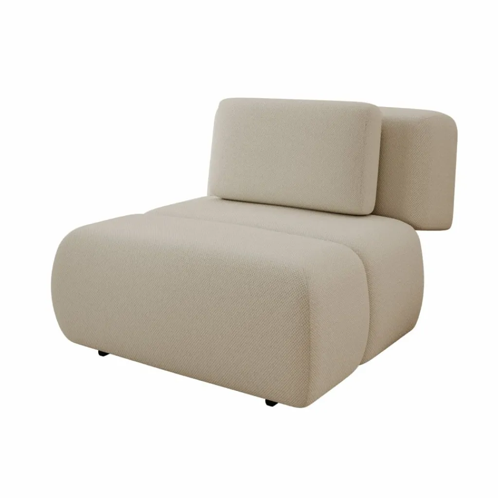 De bekleding is uitgevoerd in een beige stof met een gelijkmatige structuur. Dankzij de neutrale kleur is de fauteuil goed te combineren met diverse interieurstijlen. De lage, zwarte poten zorgen voor een stabiele plaatsing op de vloer.