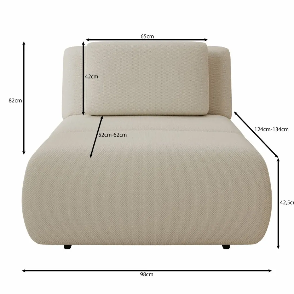 De fauteuil heeft een breedte van 98 cm en een totale diepte van 129 cm. De hoogte bedraagt 82 cm en de zithoogte ligt rond de 42,5 cm. Het diepe zitvlak biedt voldoende ruimte om ontspannen te zitten, ook met opgetrokken benen.