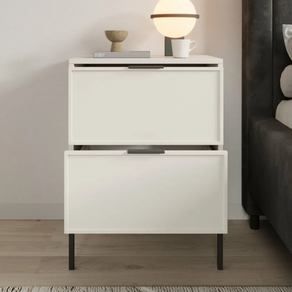 Het Dominica nachtkastje is een praktische toevoeging naast je bed en biedt overzichtelijke opbergruimte voor spullen die je graag binnen handbereik houdt. Met een breedte van 50 cm, een diepte van 40 cm en een hoogte van 69 cm past dit nachtkastje goed naast verschillende bedmaten. De twee ruime lades bieden plaats voor bijvoorbeeld boeken, opladers of andere kleine spullen die je netjes wilt opbergen.