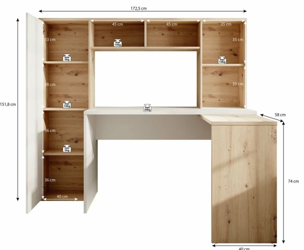Bureau Elze is uniek aangezien je zelf de keuze hebt om de grote deur aan de linker- of rechterkant te monteren. Kies dus zelf wat je het handigst vindt!