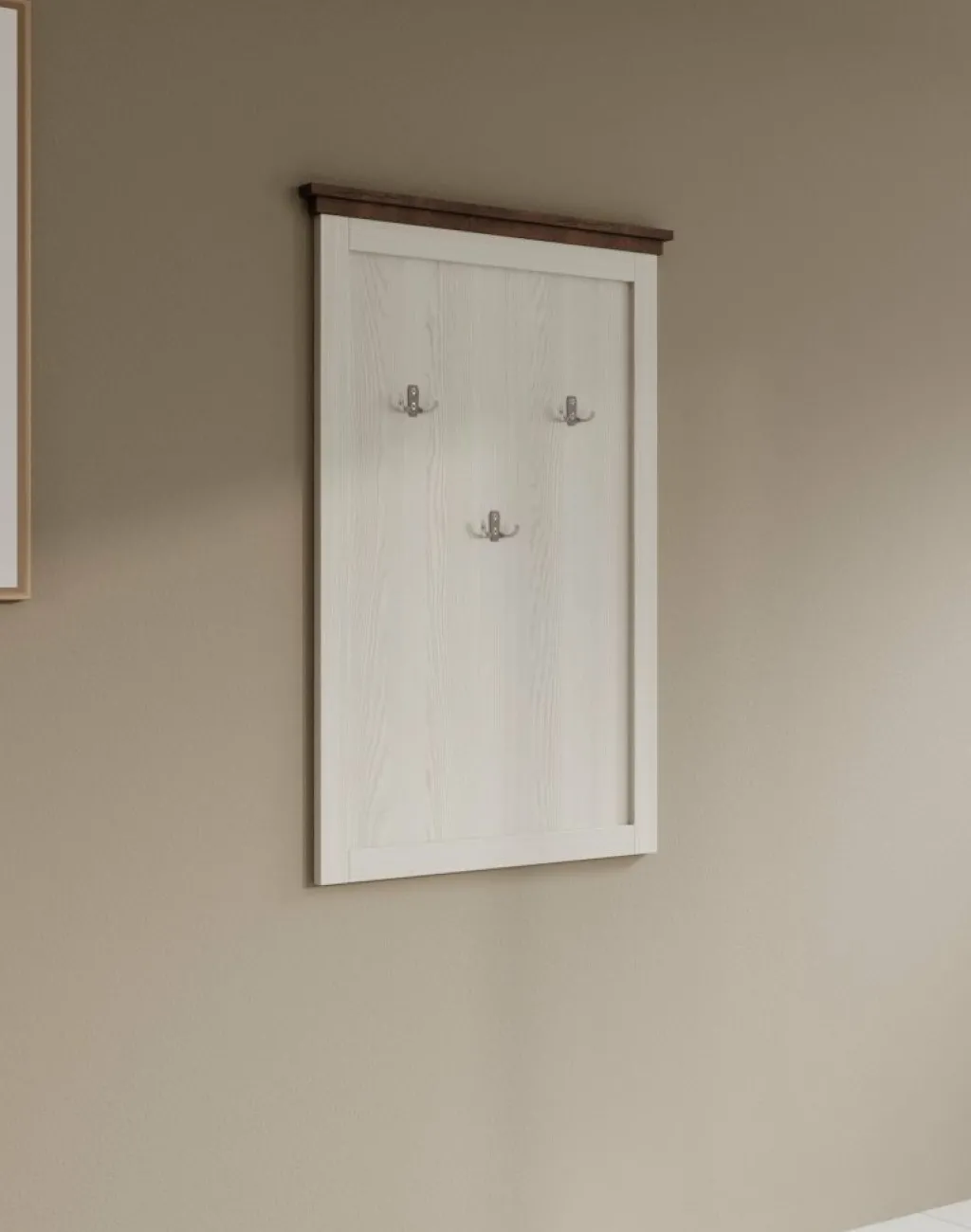 Kapstok Eric is een kapstok voor aan de muur in wit eiken kleur. De Eric beschikt over 6 haken om je jassen en andere spullen aan op te hangen. Deze wandkapstok heeft een moderne uitstraling.