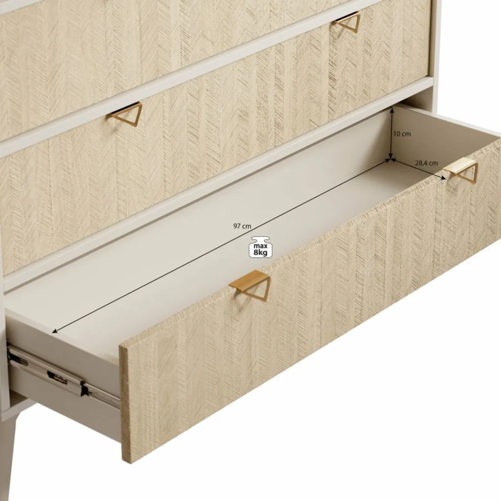 Ladekast Essence is een opbergkast in moderne Scandinavische stijl. Het dressoir is gemaakt in een beige kleur.