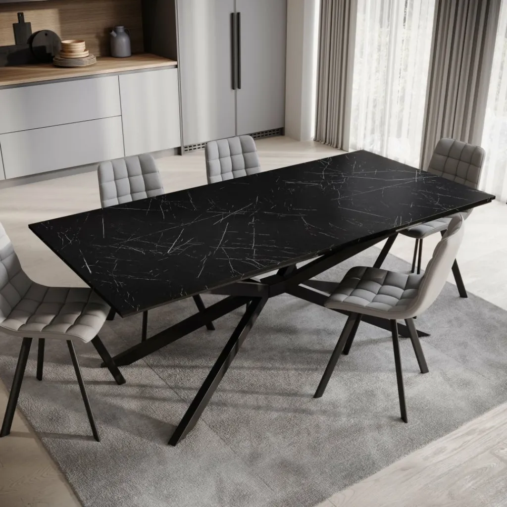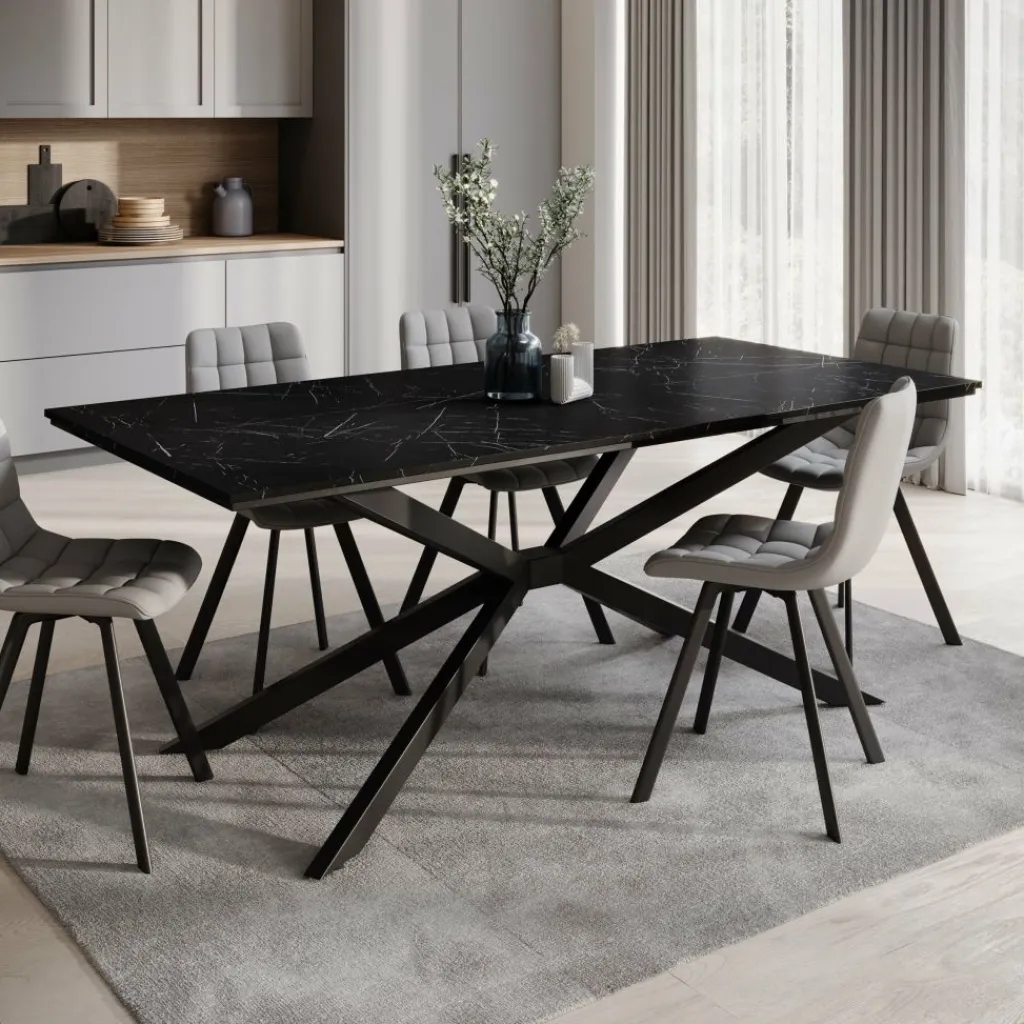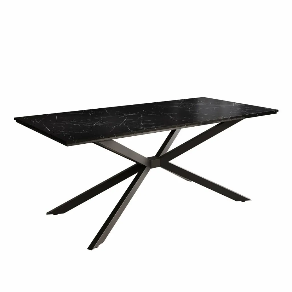 De zwart marmerlook uitvoering van de Faithley eetkamertafel combineert luxe met stoer design. Het tafelblad met marmerlook afwerking straalt elegantie uit, terwijl het opvallende zwarte metalen onderstel zorgt voor een moderne en industriële touch. Met zijn afmeting van 190×90 cm is deze tafel geschikt voor 6 personen en een perfecte keuze voor wie een stijlvolle eyecatcher in huis wil halen.