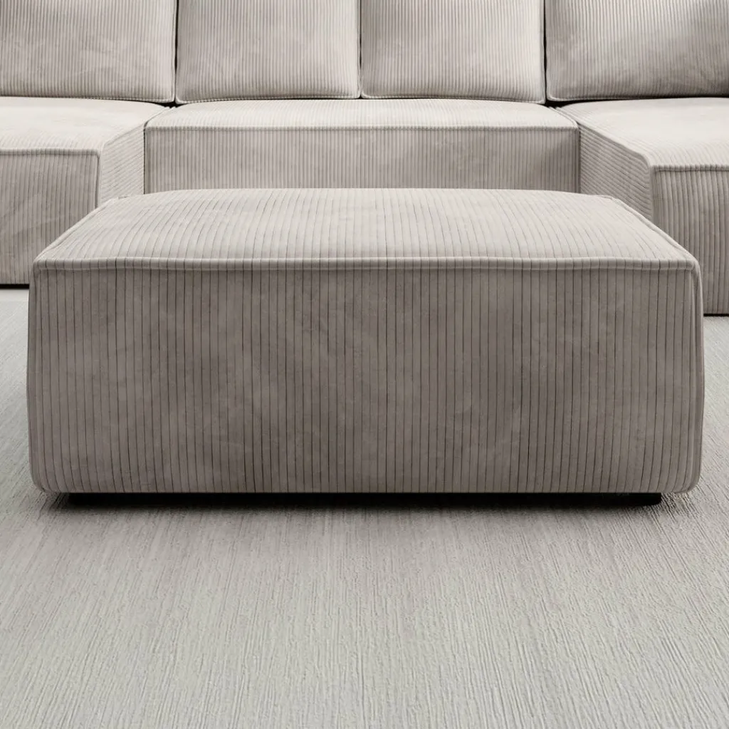 Poef Foster is een multifunctioneel model, uitgevoerd in zachte ribstof. Dankzij de afmetingen van 102×69×42 cm biedt deze poef voldoende ruimte om te gebruiken als extra zitplaats, voetenbank of salontafel.