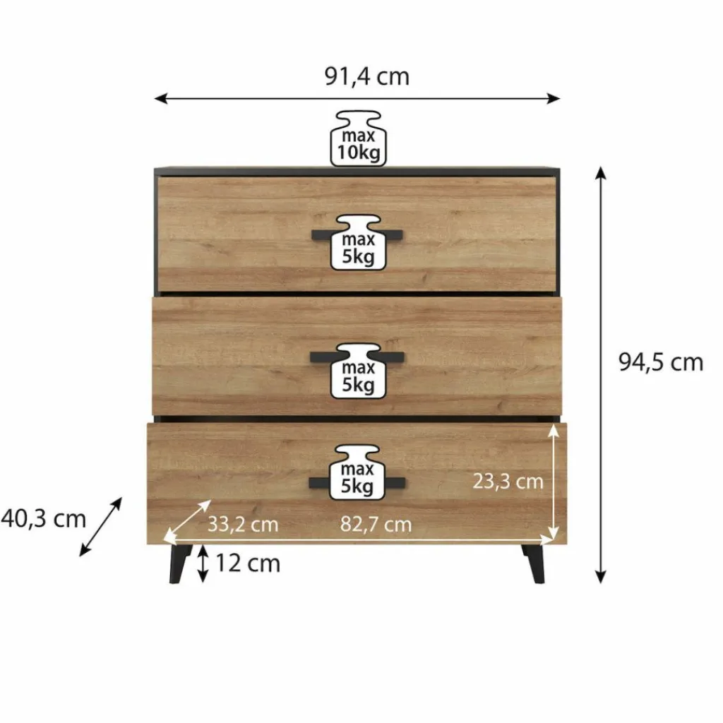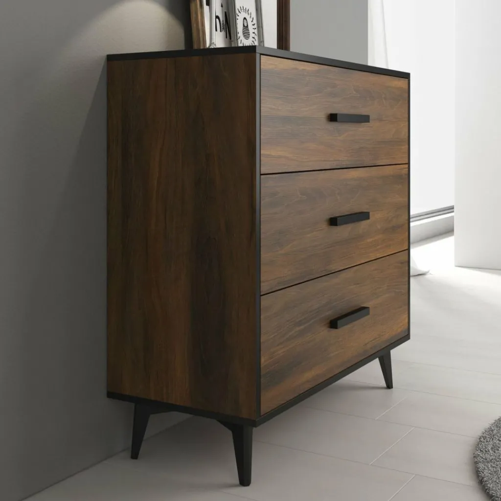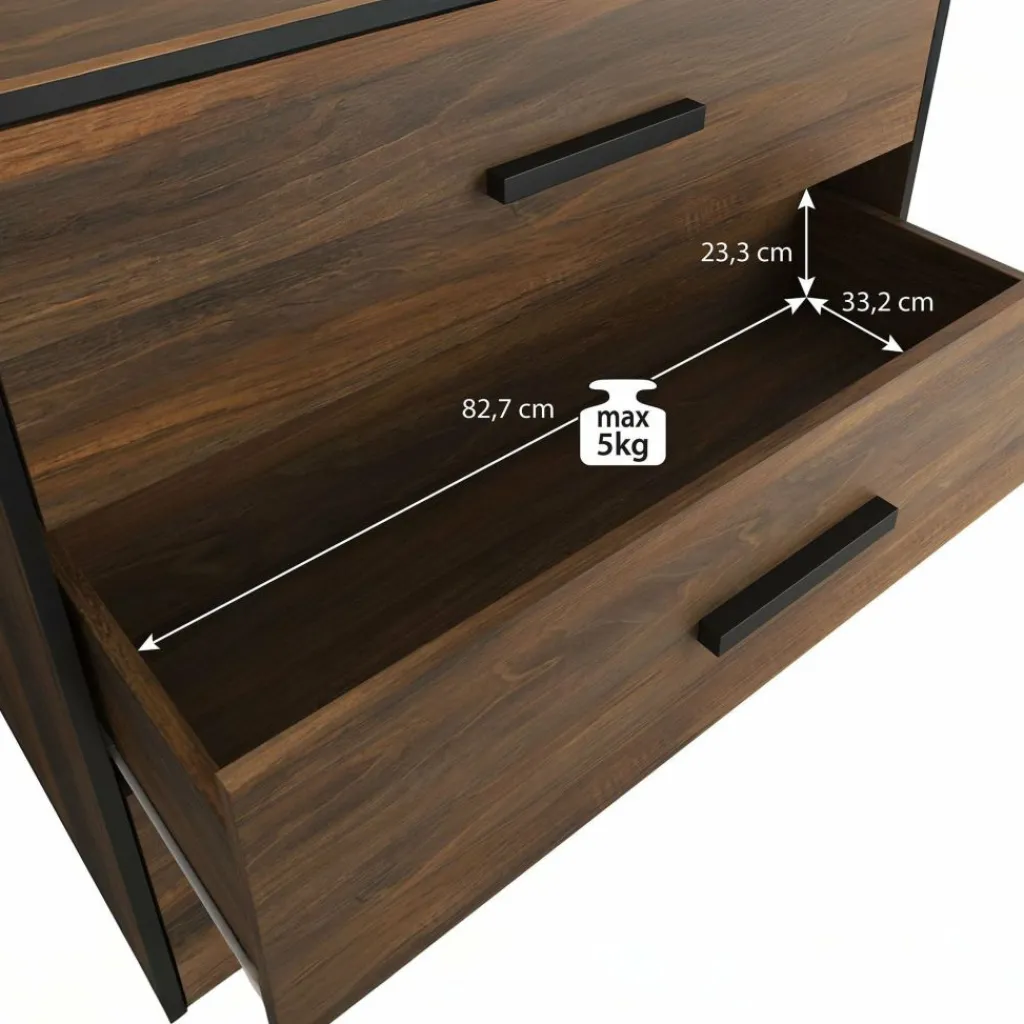 Commode Frey is een modern en praktische kast welke geschikt is voor bijna iedere ruimte in huis. Dit meubel bestaat uit 3 brede lades met handgrepen. De commode is uitgevoerd in donker eiken met zwarte details. Uiteraard is dit product ook te gebruiken als dressoir in de woonkamer, keuken of hal.