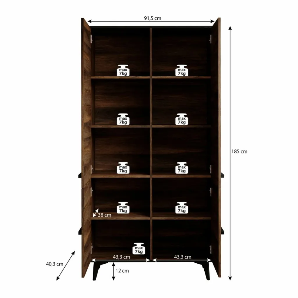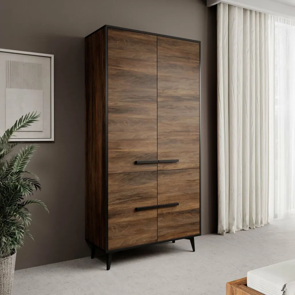 De binnenkant van de kast is uitgerust met 10 opbergvakken. Deze vakken zijn ideaal voor het opbergen van al je gevouwen kleding, schoenen en accessoires. Zo houd je alles netjes georganiseerd en gemakkelijk terug te vinden.