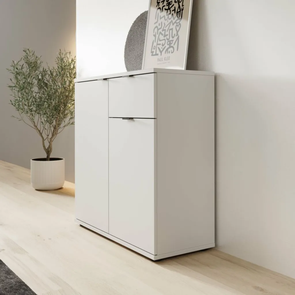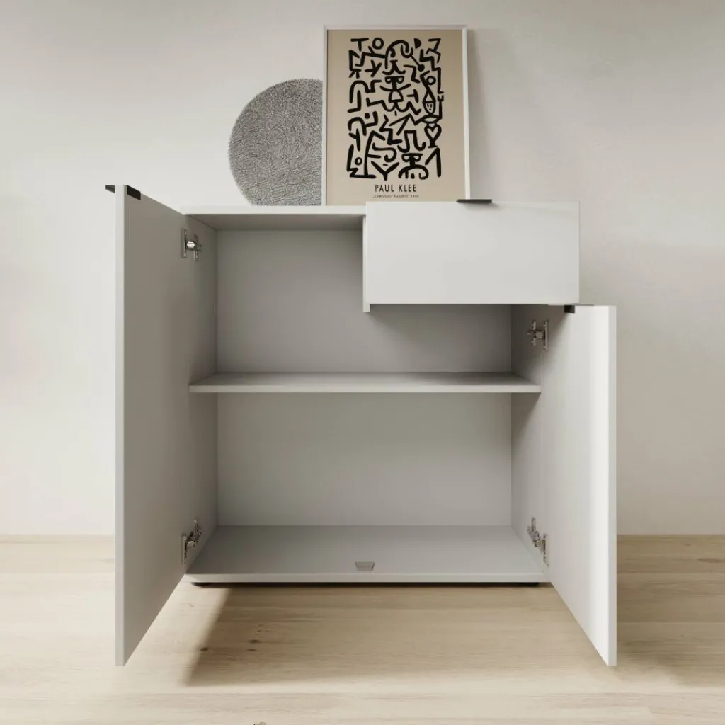 Het Galeno 2 dressoir staat stabiel op lage pootjes en heeft een maximaal draagvermogen van 40 kg. Het bovenblad is geschikt voor decoratieve objecten of functionele accessoires.