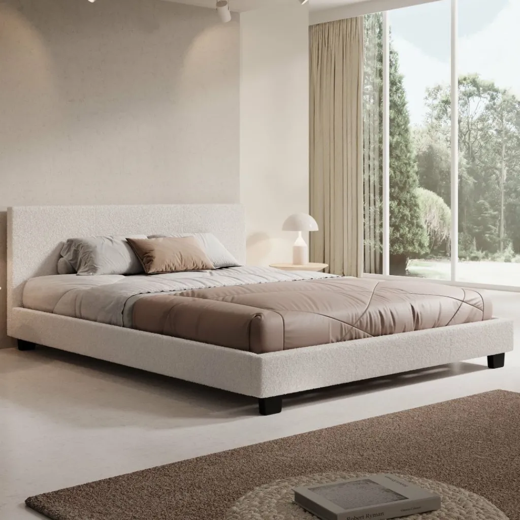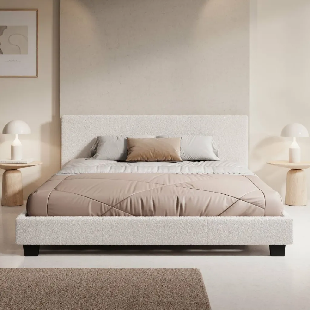 Het George tweepersoonsbed in witte teddystof is royaal en stijlvol, met een ligvlak van 180×200 cm dat volop ruimte biedt voor twee personen. De zachte teddystof geeft het bed een warme, knusse uitstraling en maakt het tot een echte eyecatcher in de slaapkamer. Het strakke hoofdbord en de lage zwarte poten zorgen voor een moderne en elegante afwerking. Perfect voor wie comfort en design wil combineren in een ruim tweepersoonsbed.