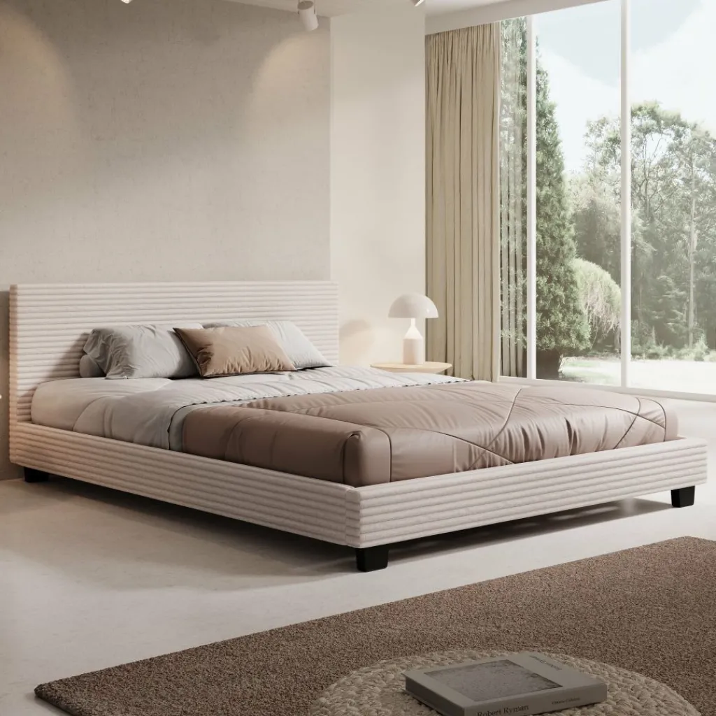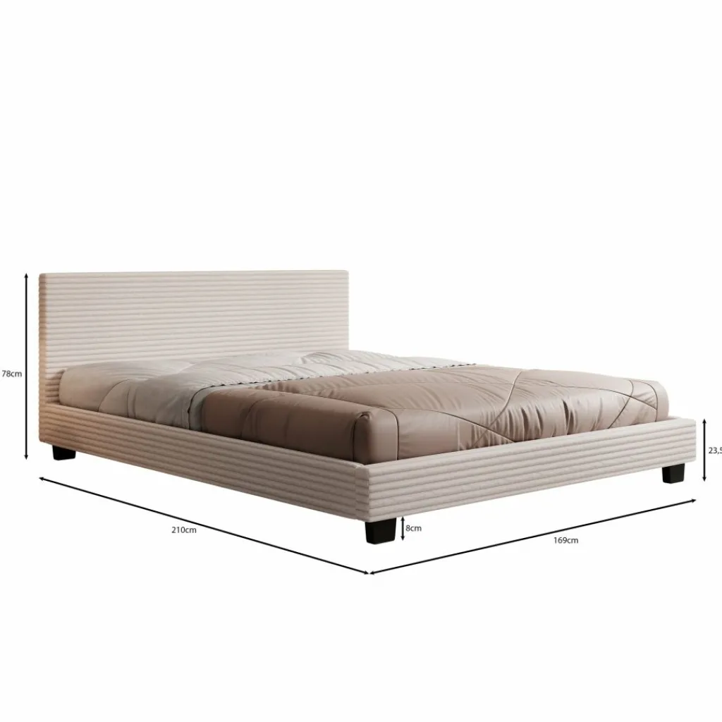 Het George tweepersoonsbed uitgevoerd in beige ribstof brengt een stijlvolle en warme sfeer in de slaapkamer. Het ligvlak van 160×200 cm biedt volop comfort voor twee personen. De fijne ribstructuur geeft het bed een speels accent, terwijl het eenvoudige design en de zwarte poten zorgen voor een strakke uitstraling. Een ideale keuze voor wie functionaliteit wil combineren met een moderne look. Dit bed wordt geleverd zonder matras, zodat je zelf de vrijheid hebt om een matras te kiezen die aansluit bij jouw slaapwensen.