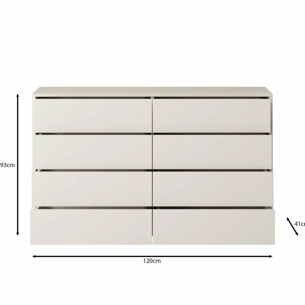 Gideon 2 ladekast is een ruime opbergkast die geschikt is voor de slaapkamer, hal of woonkamer. Met een breedte van 120 cm biedt dit model veel overzichtelijke opbergruimte, terwijl de hoogte en diepte zorgen voor een stabiel en praktisch meubel dat eenvoudig tegen een wand te plaatsen is.
