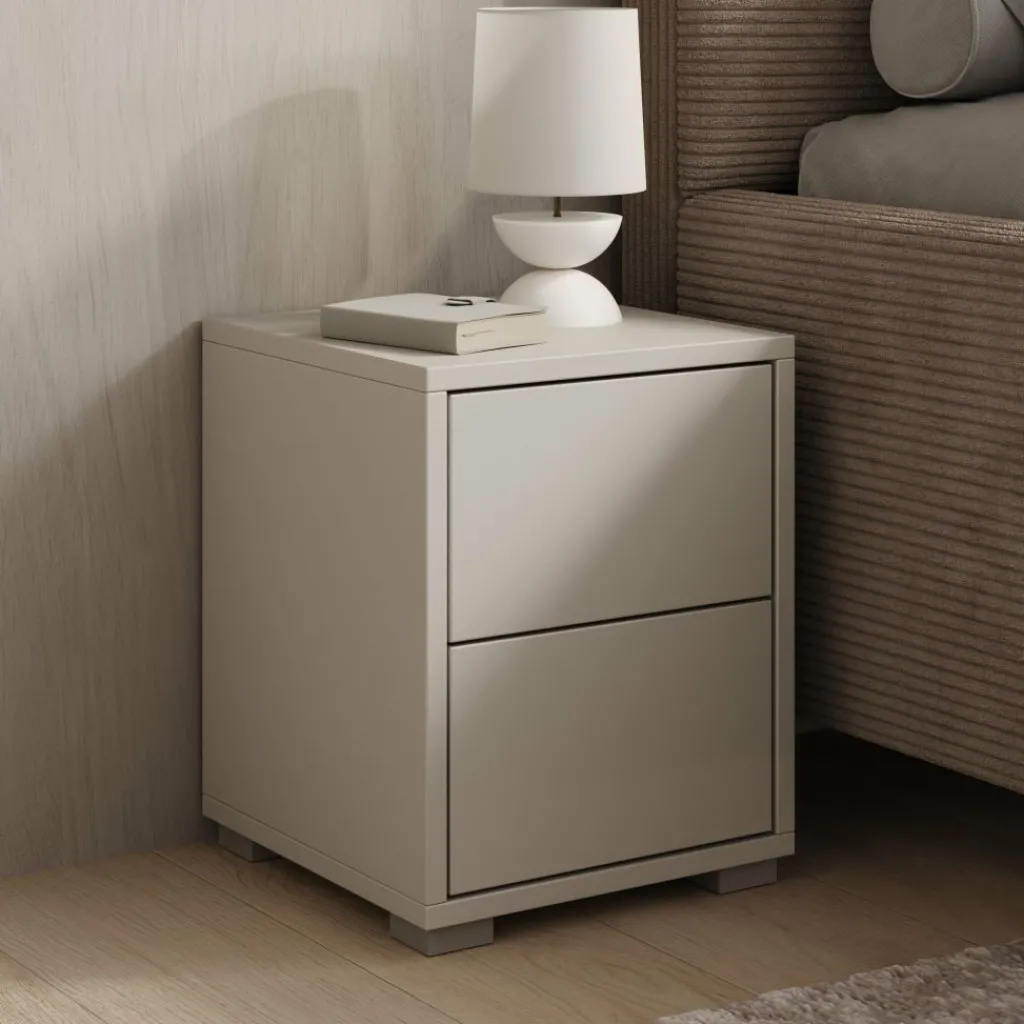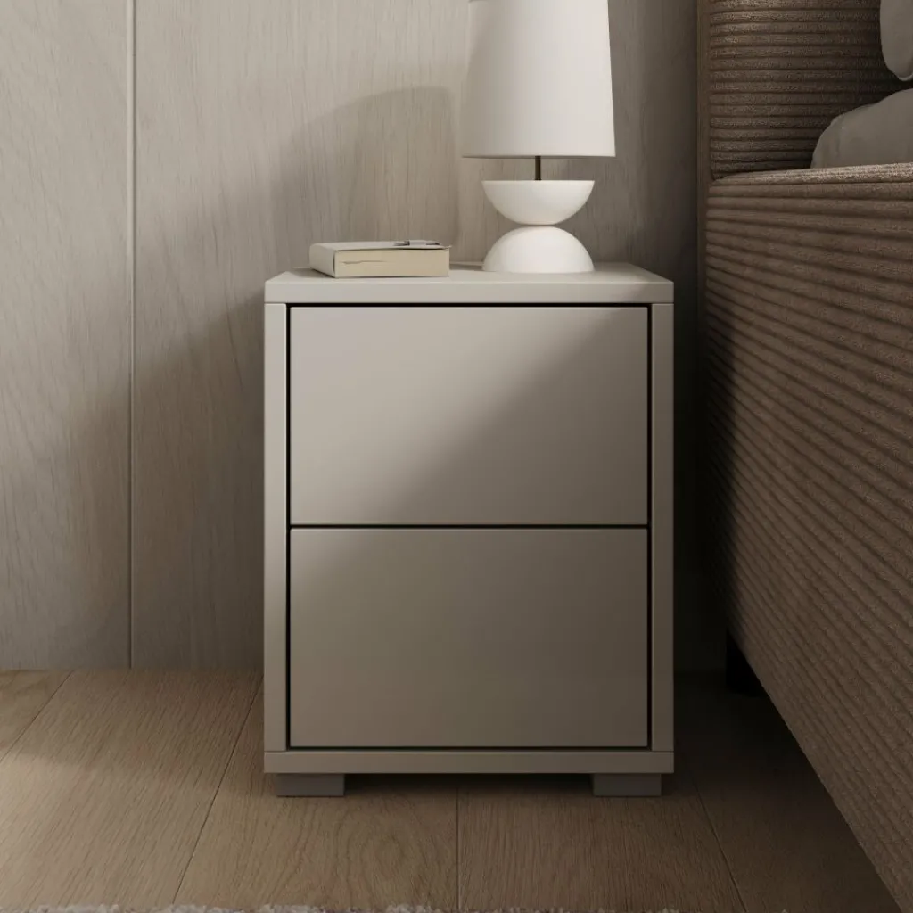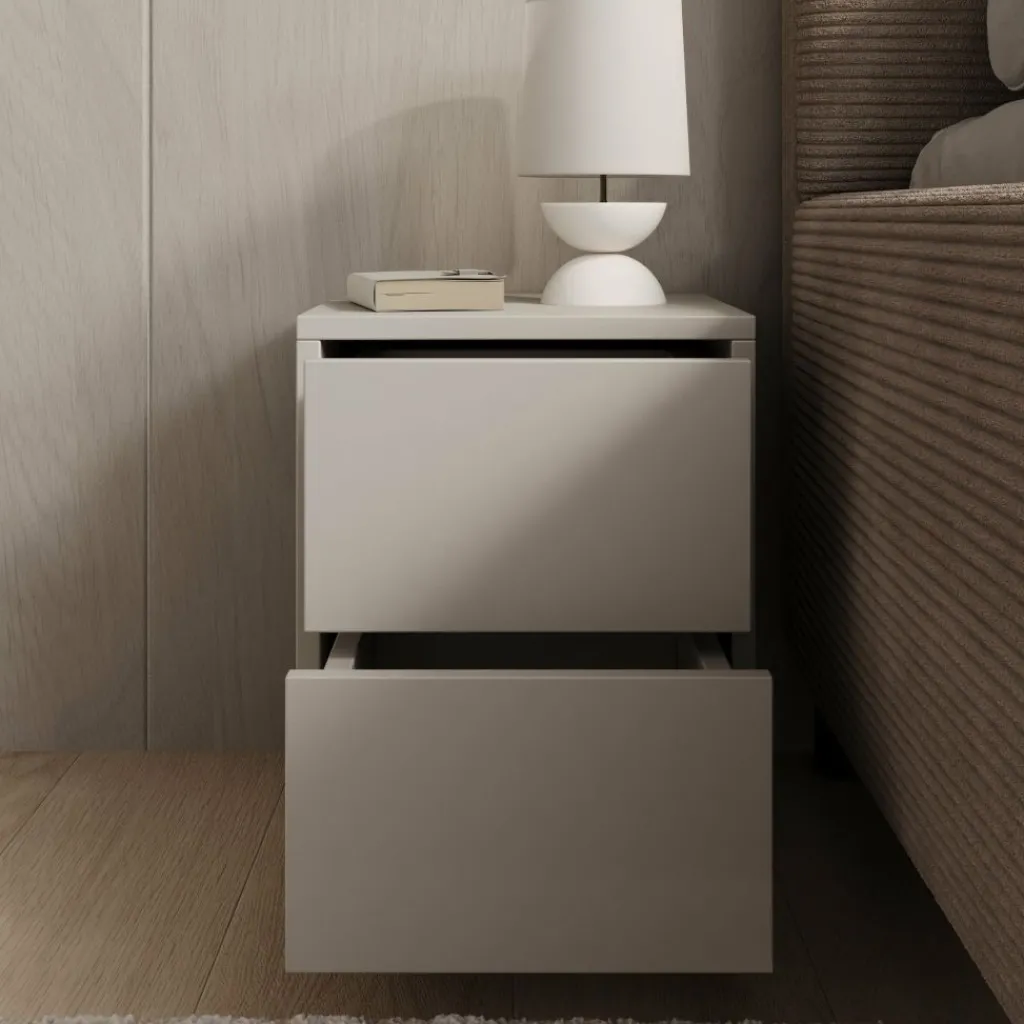 Nachtkastje Gideon heeft een strakke vormgeving en een matte beige afwerking die goed aansluit bij een modern interieur. Let op: dit is een compact model met een breedte van 30 cm, een diepte van 31 cm en een hoogte van 38 cm. Controleer daarom goed of dit kleinere formaat nachtkastje passend is naast jouw bed en binnen de beschikbare ruimte in de slaapkamer.
