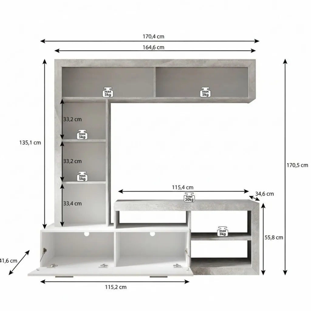 Maximale draagvermogen TV-meubel: 20 kg