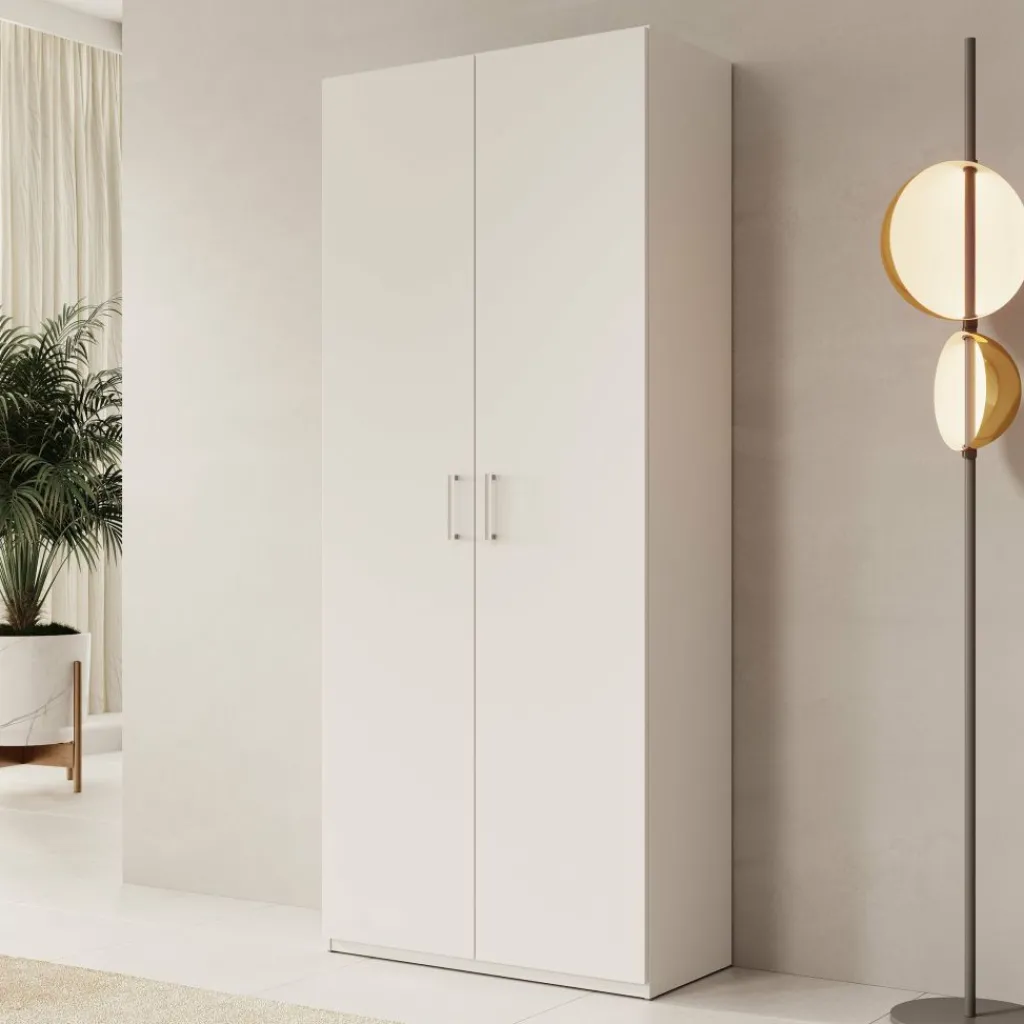 Havron is een 2-deurs kledingkast uitgevoerd in wit en heeft een strakke, functionele opzet. Met een breedte van 89 cm, een diepte van 42 cm en een hoogte van 211 cm is deze kast geschikt voor kleinere slaapkamers, logeerkamers of studentenkamers.