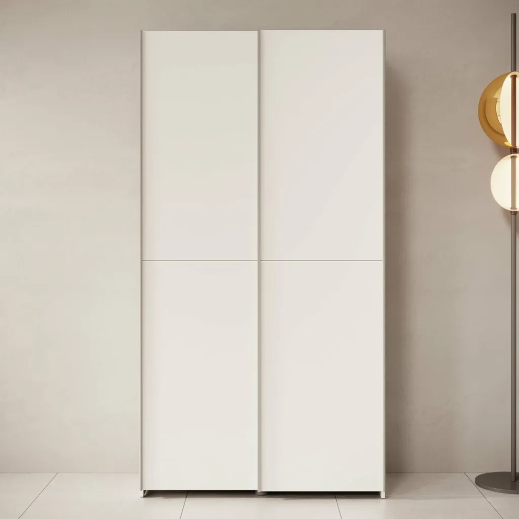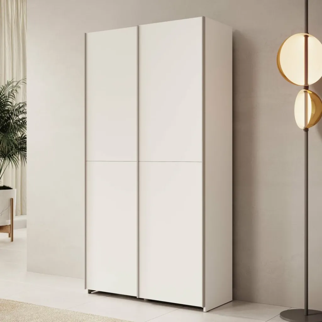 De schuifdeuren lopen soepel en sluiten het interieur netjes af. De witte afwerking zorgt voor een strakke en neutrale uitstraling, waardoor de kledingkast eenvoudig te combineren is met verschillende interieurstijlen. Door de compacte diepte van 39 cm is de Helvar kledingkast ook geschikt voor kleinere slaapkamers of andere ruimtes waar minder plaats beschikbaar is.